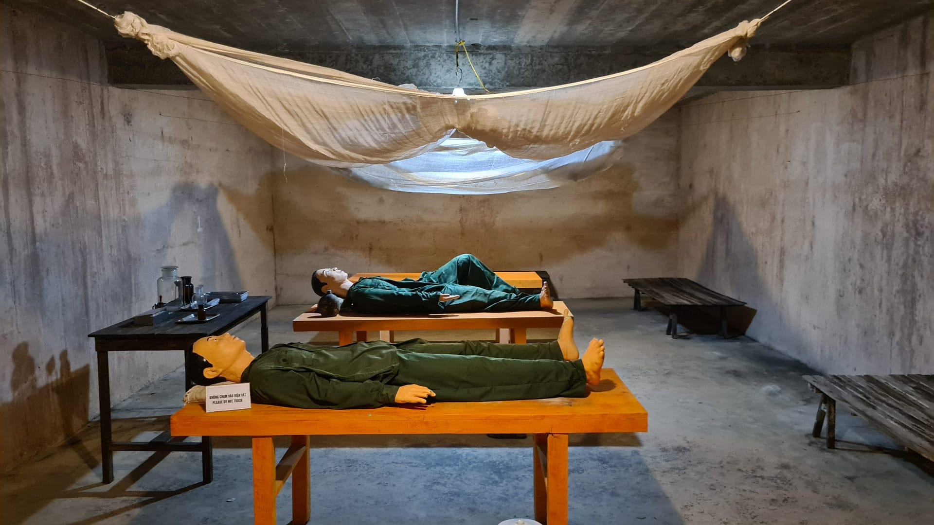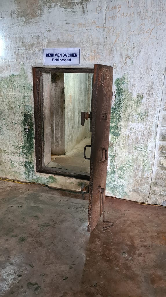 Der größte Teil der Insel ist nicht das oben erwähnte Fischerdorf, sondern der Cat Ba Nationalpark. Diesen haben wir ausgiebig am nächsten Tag mit dem Roller erkundet. Wir haben mit einem Besuch in der Hospital Cave begonnen. Hier wurden verwundete Soldaten aus dem Vietnamkrieg verarztet. Tatsächlich war der Besuch des Bunkers, der in den Felsen gehauen wurde, eher unspektakulär, aber da er direkt auf dem Weg lag, kann man sich diesen Ort schon einmal ansehen. Eintritt war mit 40.000 VND (Vietnamesische Dong) pro Person (entspricht ca. 1,50 Euro) gerade noch zu verschmerzen. Aufenthaltsdauer betrug etwa eine halbe Stunde.
