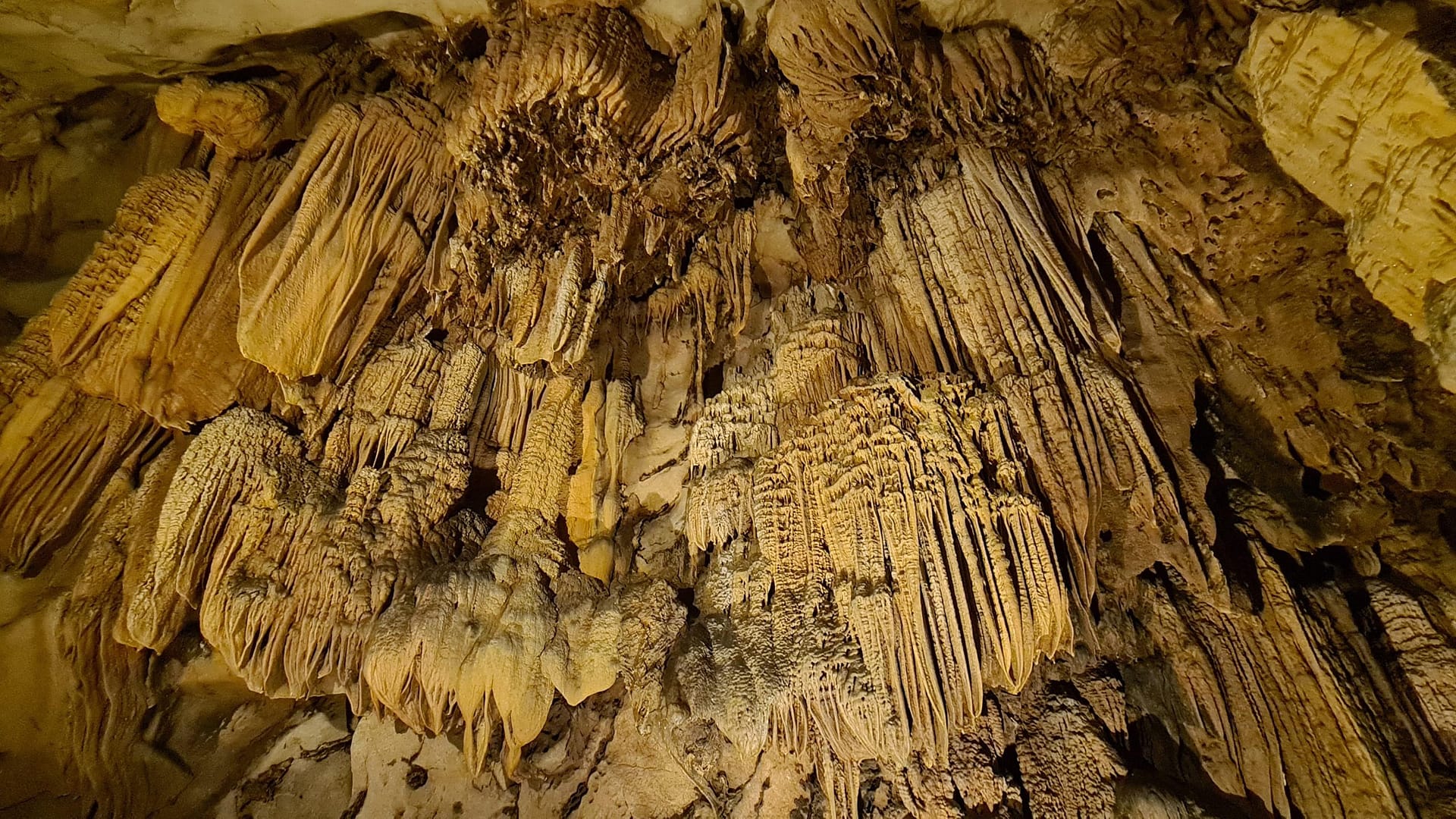 Danach ging es weiter in den richtigen Nationalpark. Wir haben ein Ticket für 80.000 VND pro Person gekauft (ca. 3,12 Euro). Diese beinhalteten den Eintritt zum Parkgebiet und zur Trung Trang Höhle. Wir haben keine anderen Touristen in der Höhle gesehen und waren zu Beginn etwas skeptisch. Dennoch haben wir zuerst die Höhle erkundet. Im Inneren der Höhle war die Luftfeuchtigkeit noch höher als im Dschungel selbst. Hin und wieder mussten wir uns tief ducken, um durch die niedrigen Gänge zu kommen. Schon bald waren wir ordentlich durchgeschwitzt. Es gab auch einige beeindruckende Felsformationen zu sehen, aber für Leute mit Knieproblemen oder sehr schlechter Kondition würden wir diese Höhle nicht empfehlen.