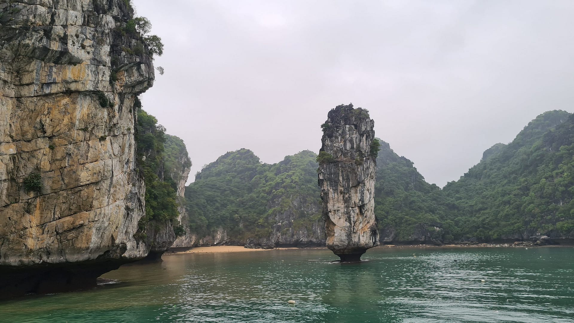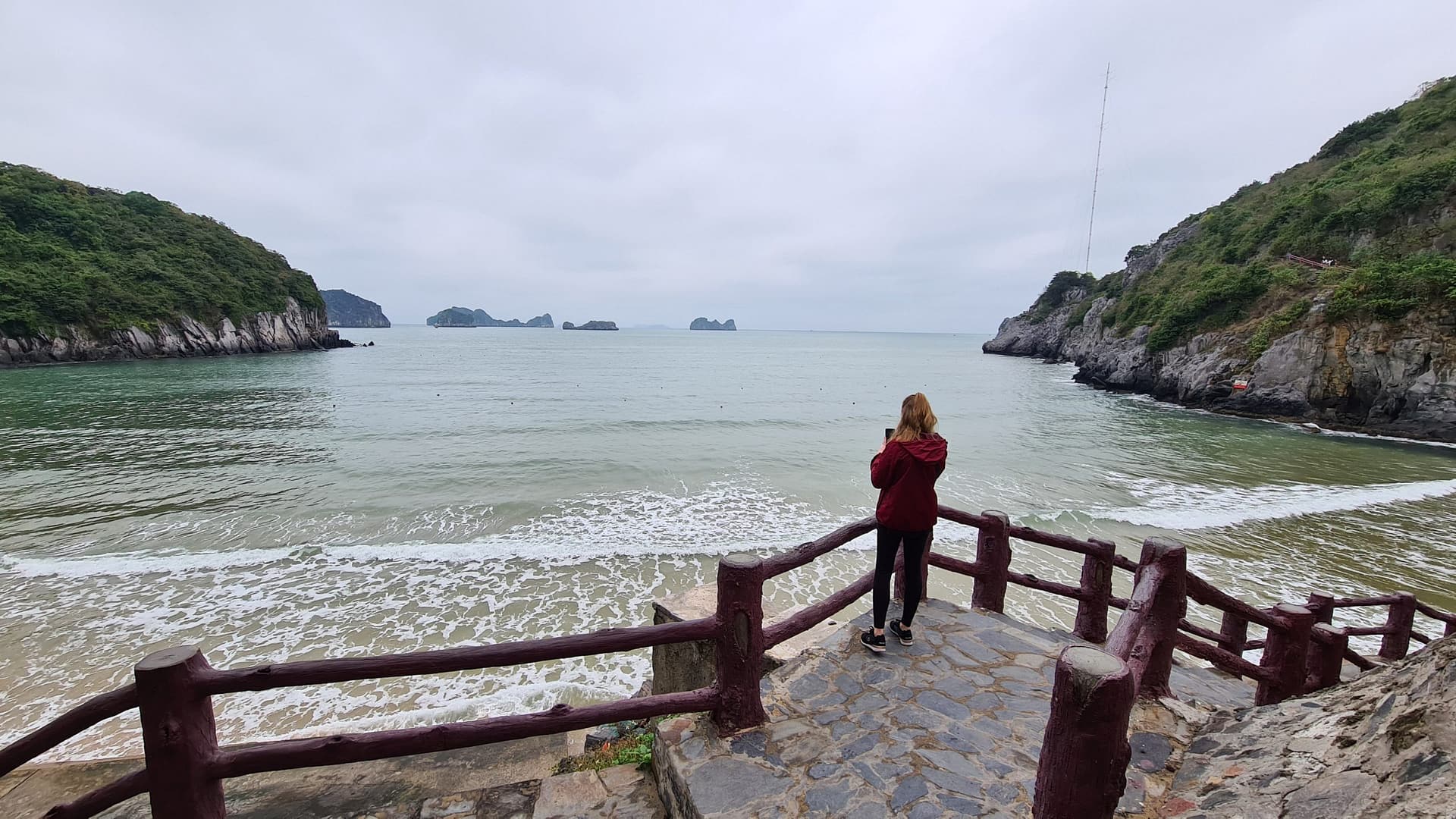 Die Aussicht auf das Meer ist gerade, wenn das Wetter etwas neblig ist, besonders schön, da die dunklen Felsen der Halong Bucht dann fast schon unheimlich wie aus einem Horrorfilm in der Entfernung schemenhaft erkennbar sind und man mit etwas Fantasie tatsächlich einzelne Rückenschuppen eines gigantischen Drachen erkennen kann.