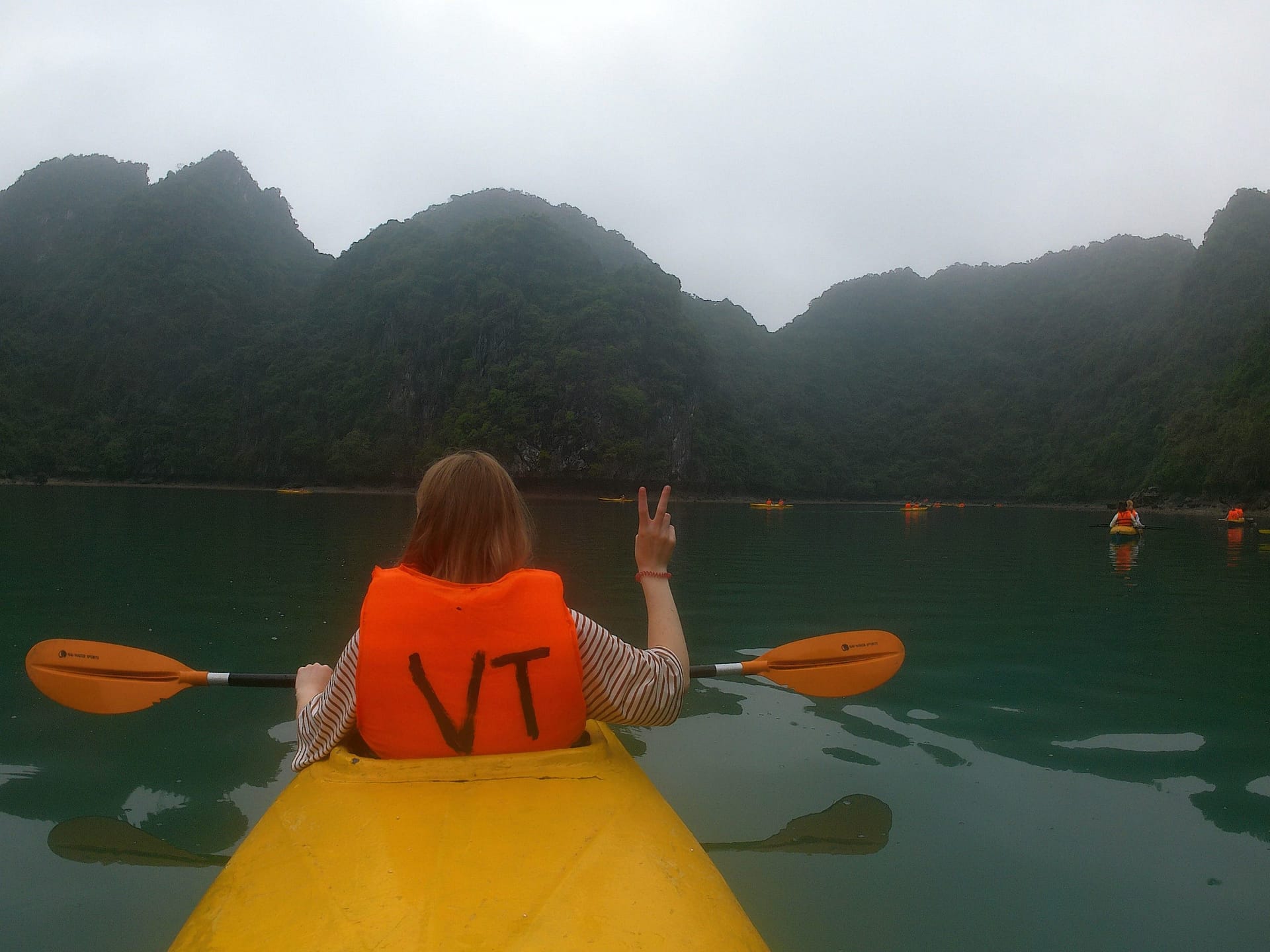 Die Kanufahrt war tatsächlich toll. (Mittlerweile hatte auch der Regen aufgehört) Es waren zwar etwas viele Touristen unterwegs, da hier viele Schiffe für eine Bootstour anlegten und die Leute paarweise in ein Kanu setzten. Nach einigen Anfangsschwierigkeiten hatten wir aber schnell den Bogen raus und fuhren durch die Dark Cave in einen See, der von Felsen ringsum eingeschlossen war und nur durch die Höhle kam man hinein oder hinaus. Die Natur dort war unglaublich schön. Dennoch haben wir uns am Ende gefragt, wo die anderen beiden Höhlen gewesen sein sollen.