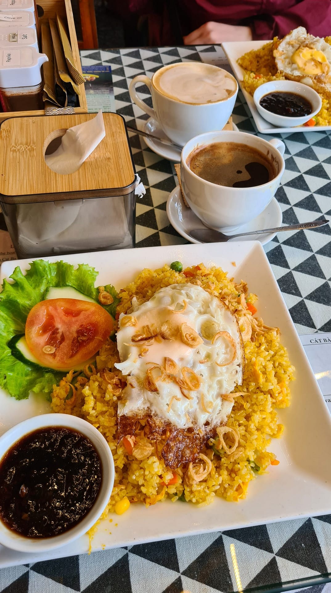 Obwohl es auf Cat Ba sehr viele Fischrestaurants gibt, sind wir mittlerweile etwas davon abgekommen Meeresfisch zu essen. Der Grund dafür ist, dass man sich (leider) einmal vorstellen muss, wie viel Müll im Ozean herumschwimmt und die Fische davon bestimmt auch einiges verspeisen, da sie es für kleine Beutetiere halten (eine durchsichtige Plastiktüte, die im Wasser treibt, sieht z.B. einer Qualle zum Verwechseln ähnlich). Daher haben wir uns auch in Cat Ba hauptsächlich durch verschiedene Arten von gebratenem Reis, Nudeln oder auch Banh Mi gehalten.(Auch dadurch beeinflusst, dass wir mehr als einmal in dem Restaurant gegessen haben, in dem der Hund unbedingt immer von Lukas gestreichelt werden wollte).
