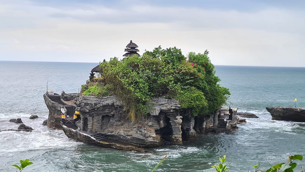 Etwa 40 Minuten von Seminyak entfernt liegt der berühmteste Tempel Balis. Der Meerestempel Tana Loth. Das Besondere dran ist, dass er auf einer Felsspitze im Meer gebaut wurde, die sich trockenen Fußes nur bei Ebbe erreichen lässt. Neben den Reisfeldern gilt dieser Ort als das beliebteste Postkartenmotiv der Insel. Entsprechend viele Händler haben ihre Stände vor den Eintrittstoren der Anlage aufgebaut. Es gibt dort auch einige Cafés und Restaurants, an denen man sich mit einem schönen Blick auf den Tempel stärken kann. Da (wie überall) die Touristen-Hotspots meist etwas teurer sind als an etwas abgelegeneren Orten, haben wir jedoch verzichtet hier zu essen.