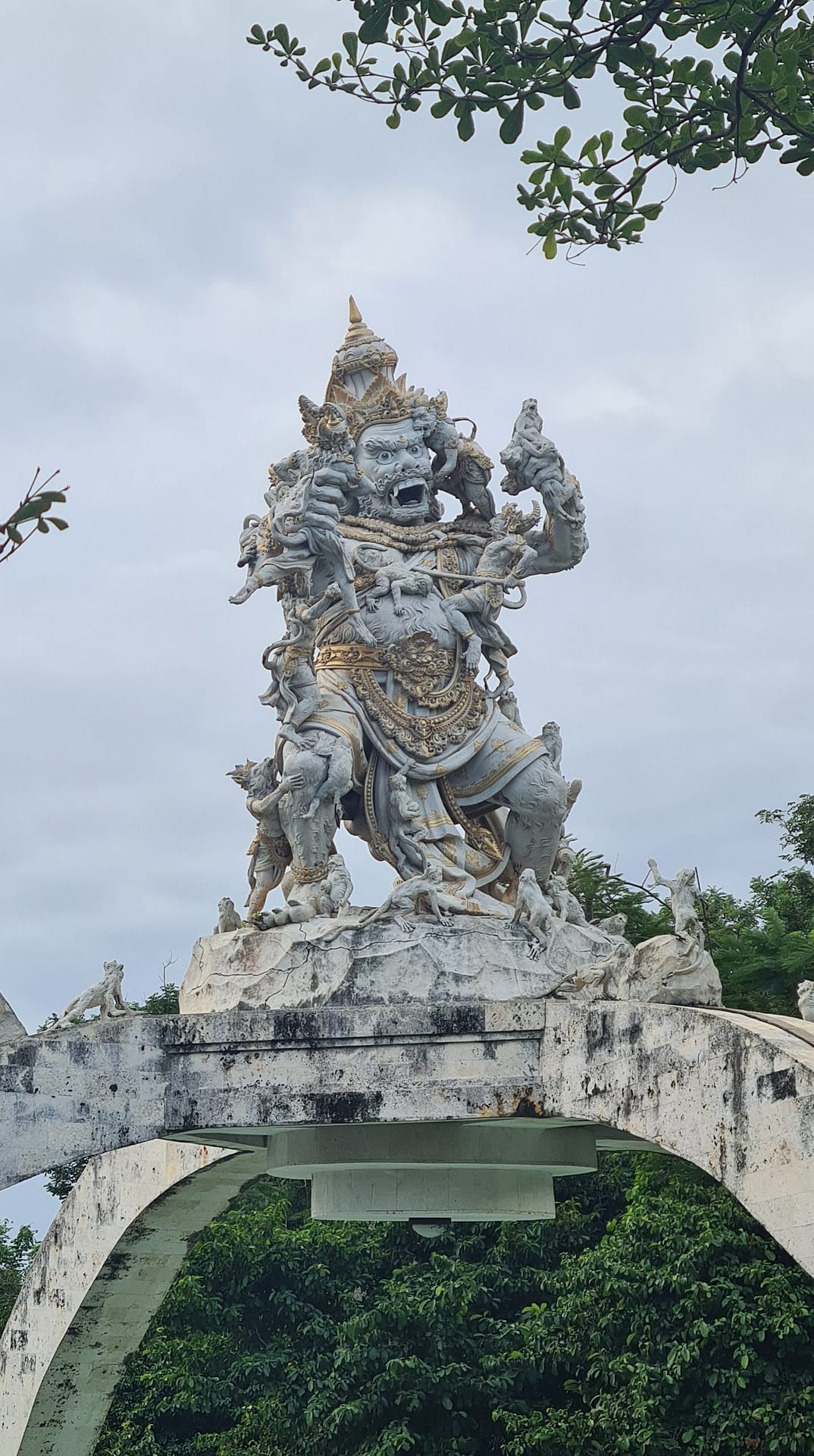 Weiter ging es zu einer neuen Sehenswürdigkeit. Dem GWK- Cultural Park. GWK ist die Abkürzung für Garuda-Wishnu-Kencana (Garuda und Wishnu sind Gottheiten und Kencana bedeutet „Gold“ auf Indonesisch). Der Park wurde 2018 bereits gebaut, aber erst während der letzten Jahre eröffnet. Aushängeschild ist eine riesige Statue der Gottheit Wishnu, die auf dem Garudavogel fliegt. Der Park soll den Touristen die indonesische Kultur durch Tanzveranstaltungen und Theaterspiele etwas näher bringen. Allerdings merkt man auch, dass er nur für Touristen ausgelegt ist, da die Preise überdurchschnittlich hoch waren. Für ein schmales Budget ist ein Besuch hier also kein Muss, dennoch sind die großen Figuren hier beeindruckend. Der Basiseintrittspreis in den Park beginnt bei 125.000 IDR pro Person, das entspricht etwa sieben bis acht Euro. Möchte man allerdings die Aussicht aus der riesigen Statue genießen, muss man noch einmal ordentlich in die Tasche greifen. Daher haben wir darauf verzichtet.