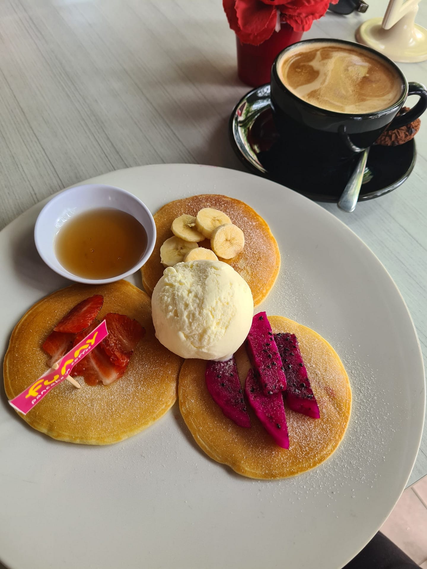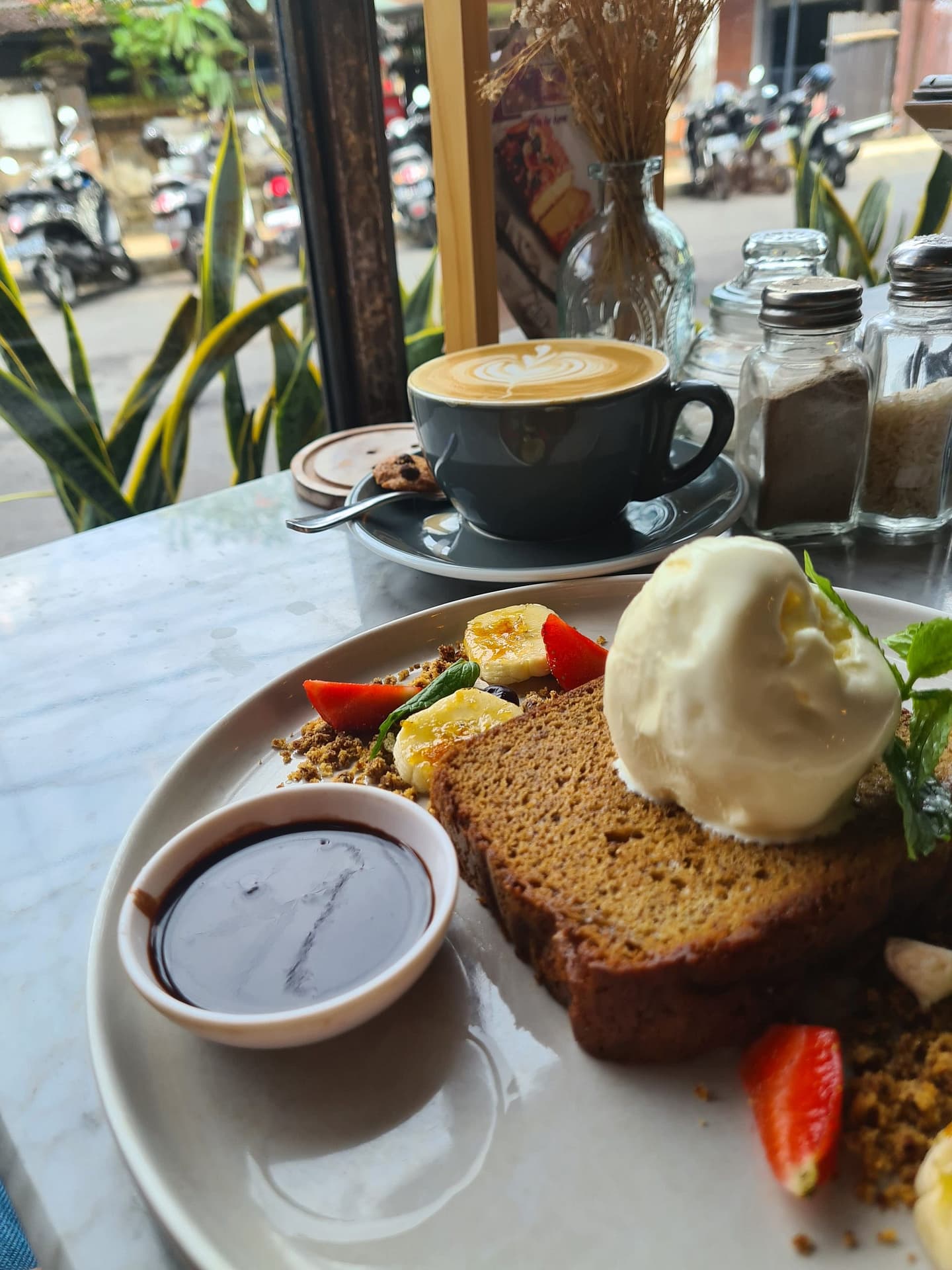 Wir fuhren zum Frühstücken ein paar mal ins Funny’s Pancakes. Einer der wenigen Stammläden, die es aus unserer Zeit vor fünf Jahren noch gab, auch wenn die zweite Filiale, in der wir früher häufiger waren, mittlerweile ebenfalls geschlossen wurde. Ebenfalls ein Stammladen von früher ist die Casa Asia in Nusa Dua. Ein Hotel mit zugehörigem Restaurant, der unglaublich leckere Steinofenpizza macht. Mittlerweile findet man übrigens fast überall in den Touristengebieten Balis zumindest eine Pizzeria, die einen Steinofen hat. Das war bei unserem letzten Besuch noch nicht so weit verbreitet. Ebenfalls guten Kaffee und leckeres Frühstück (wenn auch etwas teurer, da es eher für Touristen war), gab es im Dusty in Seminyak, nicht weit von unserer Unterkunft entfernt.