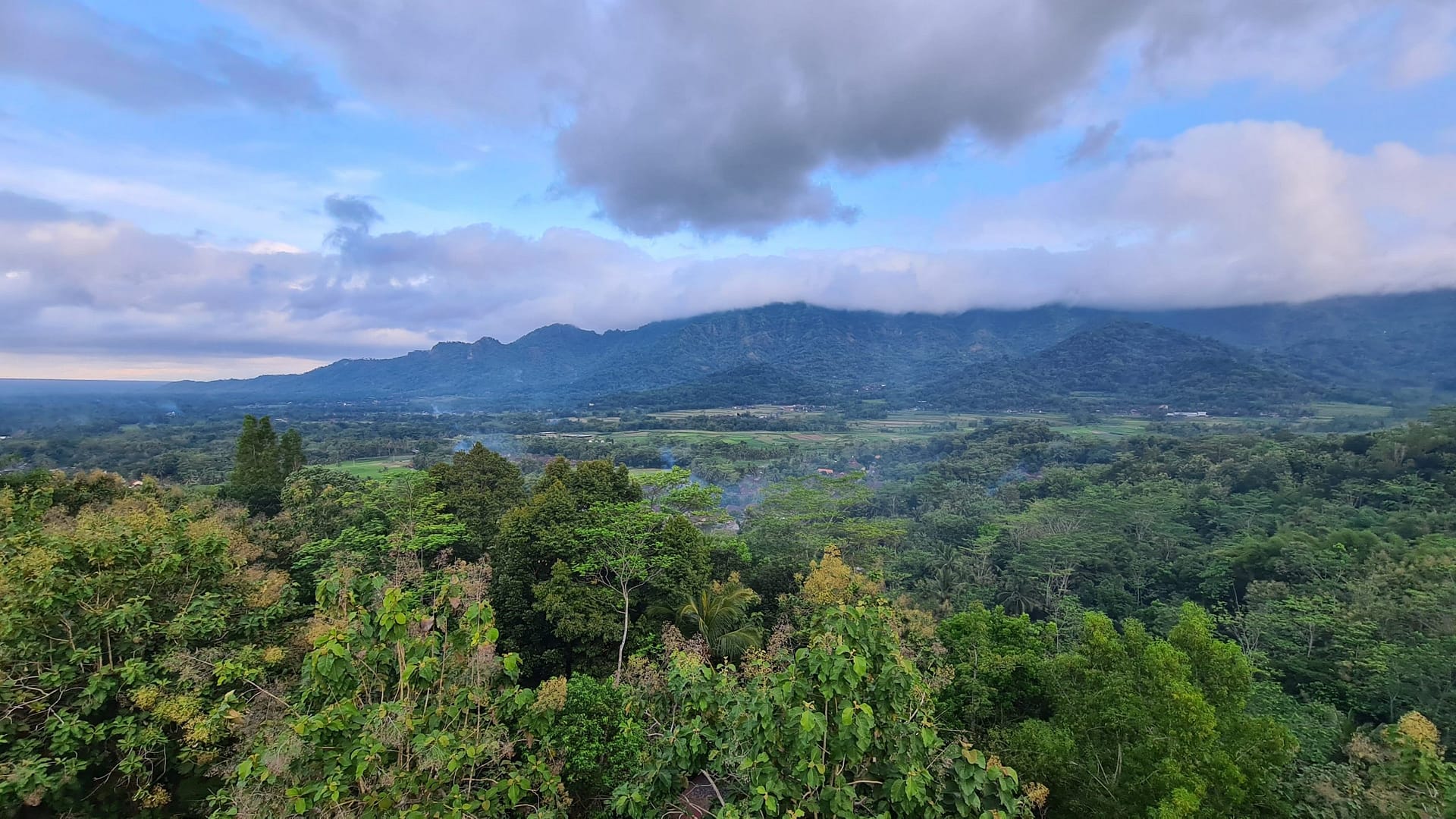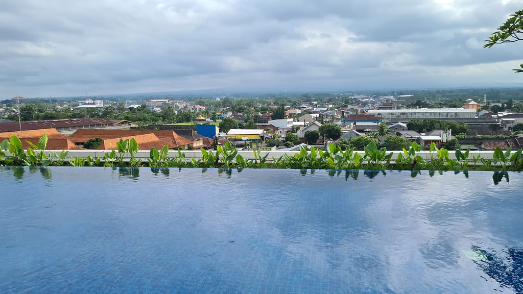 Blick vom Hoteldach mit Pool über Yogyakarta