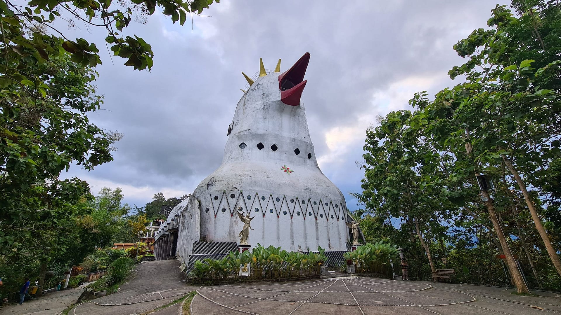 Wir kamen also an der Chicken Church an und alles hat wunderbar funktioniert. Die Kirche sieht tatsächlich aus wie ein Huhn. Man musste nur sehr wenig Eintritt zahlen (ca. 1,50 Euro pro Person) und bekam eine Führung durch die verschiedenen Stockwerke. So lernten wir, dass die Kirche eigentlich kein Huhn, sondern eine Friedenstaube darstellen soll. Aufgrund einer wirtschaftlichen Rezession wurde der Bau für einige Jahre eingestellt und in dieser Zeit begannen die Einwohner das Gebäude Chicken Church zu nennen. Dieser Name hat sich bis heute gehalten. Der Erbauer dieses Werkes sah diesen Platz als Ort der Erleuchtung und wollte ihn für alle Religionen begehbar machen. So bietet die Chicken Church Gebetsräume für viele verschiedene Glaubensrichtungen. Im ersten Stock gibt es einen größeren Raum, für verschiedenste Zeremonien. Im zweiten Stock gibt es noch ein kleines Café. Außerdem kann man über eine kleine Metallwendeltreppe nach oben steigen und die Aussicht vom Kopf des Huhns genießen. (Auch wenn wir gelernt haben, dass es eigentlich eine Friedenstaube ist, nennen wir es weiterhin Huhn :D).
