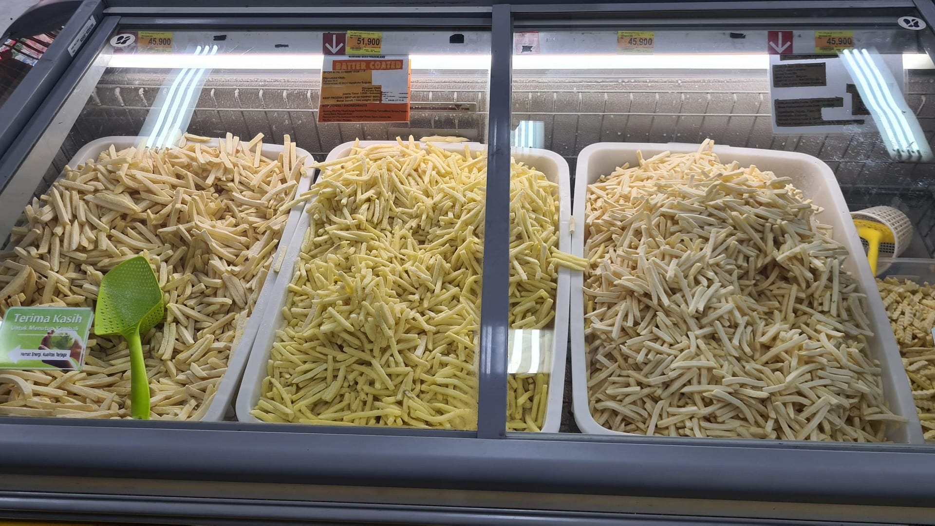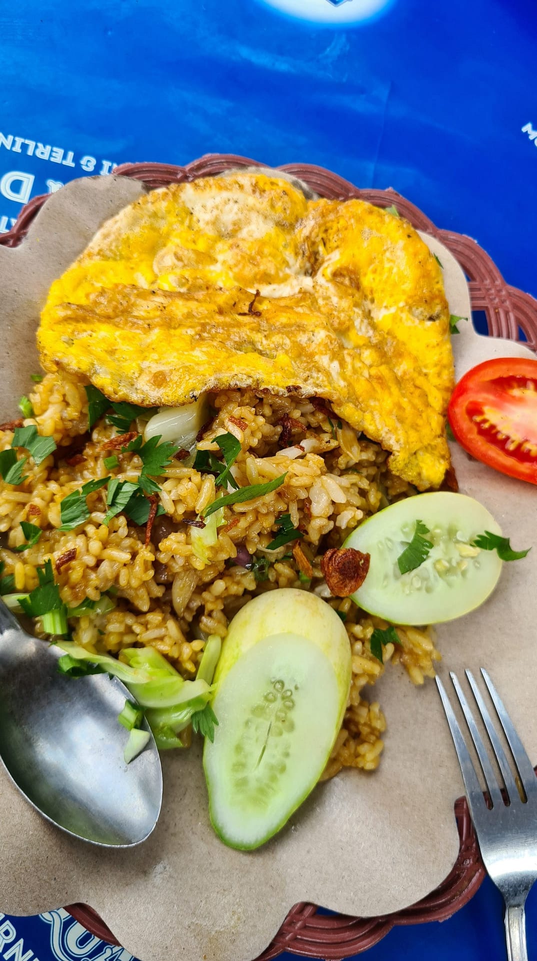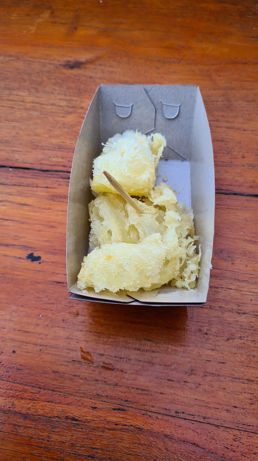 Auch in Yogyakarta haben wir (wie immer) gebratenen Reis und gebratene Nudeln gegessen. Außerdem haben wir Tahu Telur mit Erdnusssoße gegessen. (=Tofu mit Ei). Sehr lecker waren auch gefüllte und frittierte Teigtaschen (Gemüse Roti), die wir uns über die Essensfunktion der Grab-App bestellt haben. Manchmal hat man keine Lust noch einmal vom Hotel extra mit dem Roller in die Stadt zu fahren und etwas zu essen zu suchen. Da ist diese Funktion wirklich praktisch. Neben uns befand sich ein Lotte-Großhandel. Hier konnten wir uns täglich unser Frühstück besorgen. An der Chicken Church gab es für uns gratis eine lokale spezialität aus Kartoffeln, von der wir leider den Namen vergessen haben. In einem Einkaufszentrum gab es fluffige Eierpfannkuchen mit Eis und Agavendicksaft.