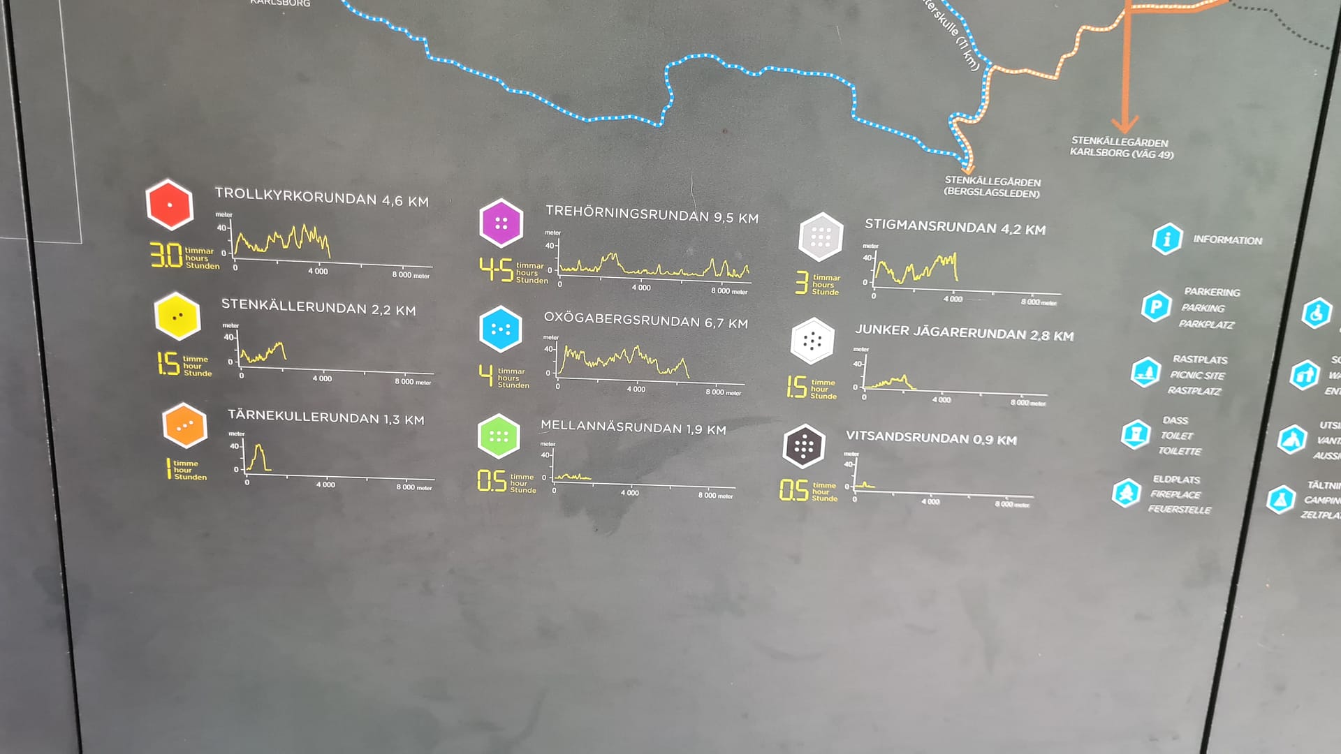 Hier findest du eine Übersicht der Wanderwege in Tiveden. Leider ist hier nur die Länge und nicht die Dauer der Wege angegeben, deshalb findest du die ungefähre Dauer hier in der Bildergalerie. Diese haben wir am Parkplatz abfotografiert. (Links wurden am 14.11.2023 zuletzt geprüft)