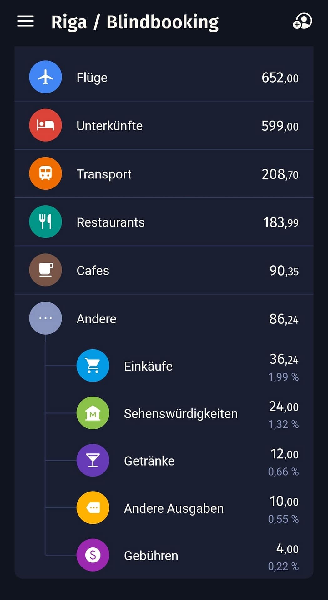 Eigentlich können wir also von unseren Gesamtausgaben 324,95 Euro abziehen, da diese nur anfallen, wenn du am Vortag anreist bzw. so weit weg vom Flughafen wohnst, dass dich niemand kurzfristig fahren kann. Insgesamt bedeutet das also: 1.820,28 – 324,95 = 1.495,33 Euro Ausgaben für sechs Tage Riga (der siebte Tag war ja Frankfurt). Bedeutet, dass wir pro Tag 249,22 Euro ausgegeben haben. Pro Person sind das 124,61 Euro.