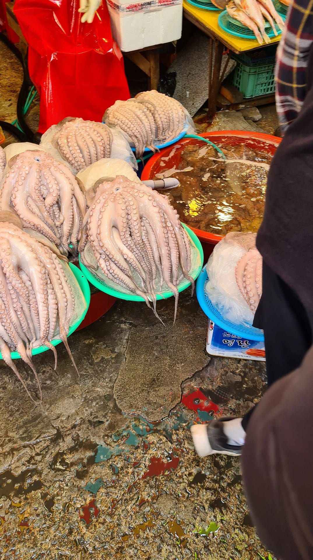 Der erste Stopp war der Jagalchi-Fischmarkt. Hier gab es entlang der kompletten Straße links und rechts alle möglichen Sorten an Fischen, Krabben, Oktopussen und sogar einige Schildkröten ( 🙁 ), die zum Verkauf angeboten wurden. Man konnte sich an einigen Ständen die Fische in den Aquarien aussuchen, die dann wenige Minuten später zubereitet und gegrillt wurden, damit man sie in einer Tüte verpackt mit nach Hause nehmen konnte. In der „Kulinarik“-Galerie unten befinden sich auch davon ein paar Fotos, da das Wissen wo der Fisch herkommt, wenn man ihn isst auch irgendwie dazugehört.