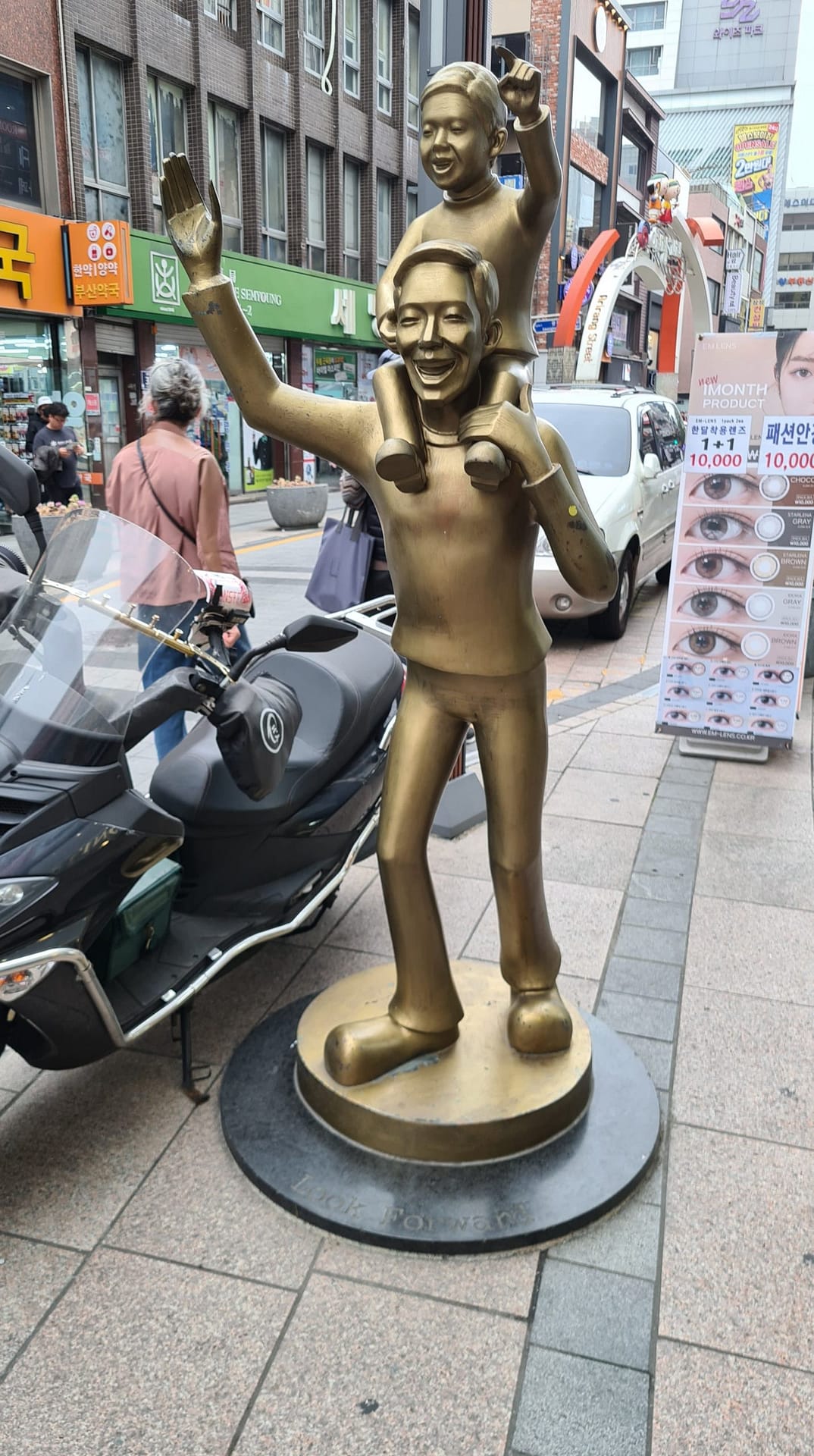 Danach ging es weiter zum BIFF-Square. BIFF steht für Busan International Film Festival und ist sozusagen die koreanische Version des berühmten „Walk of Fame“ in Hollywood. Südkorea überrascht immer häufiger mit qualitativ sehr guten Film- und Serienproduktionen. Sei es ein Horrorfilm wie „Train to Busan“ von 2016 (den Zug haben wir zum Glück nicht genommen :D), der Oscar-Gewinner „Parasyte“ für den besten Film 2020, oder dem Netflix-Hit „Squid-Game“ von 2021. Daher ist es kein Wunder, dass hier auch viele Geschäfte und Streetfood-Läden angesiedelt sind, die Touristen zum Entdecken einladen.