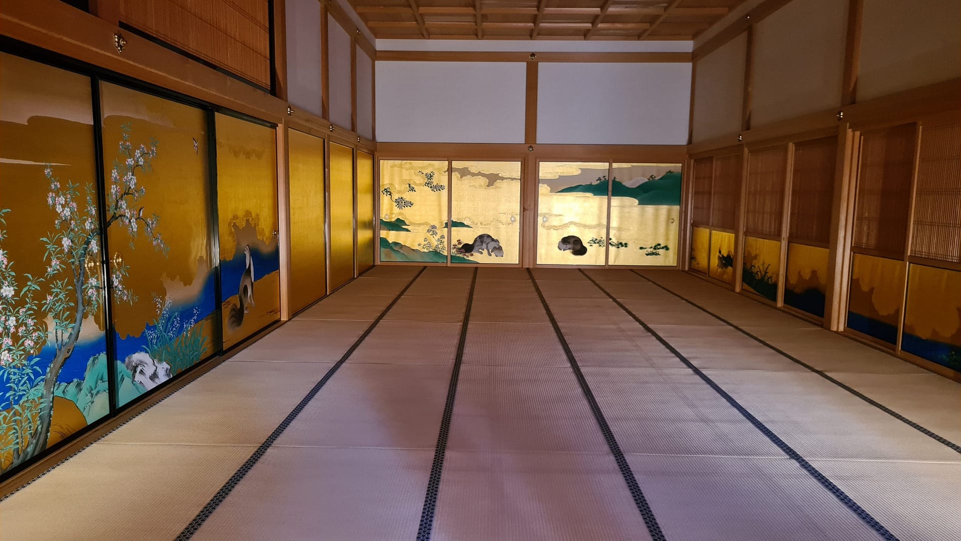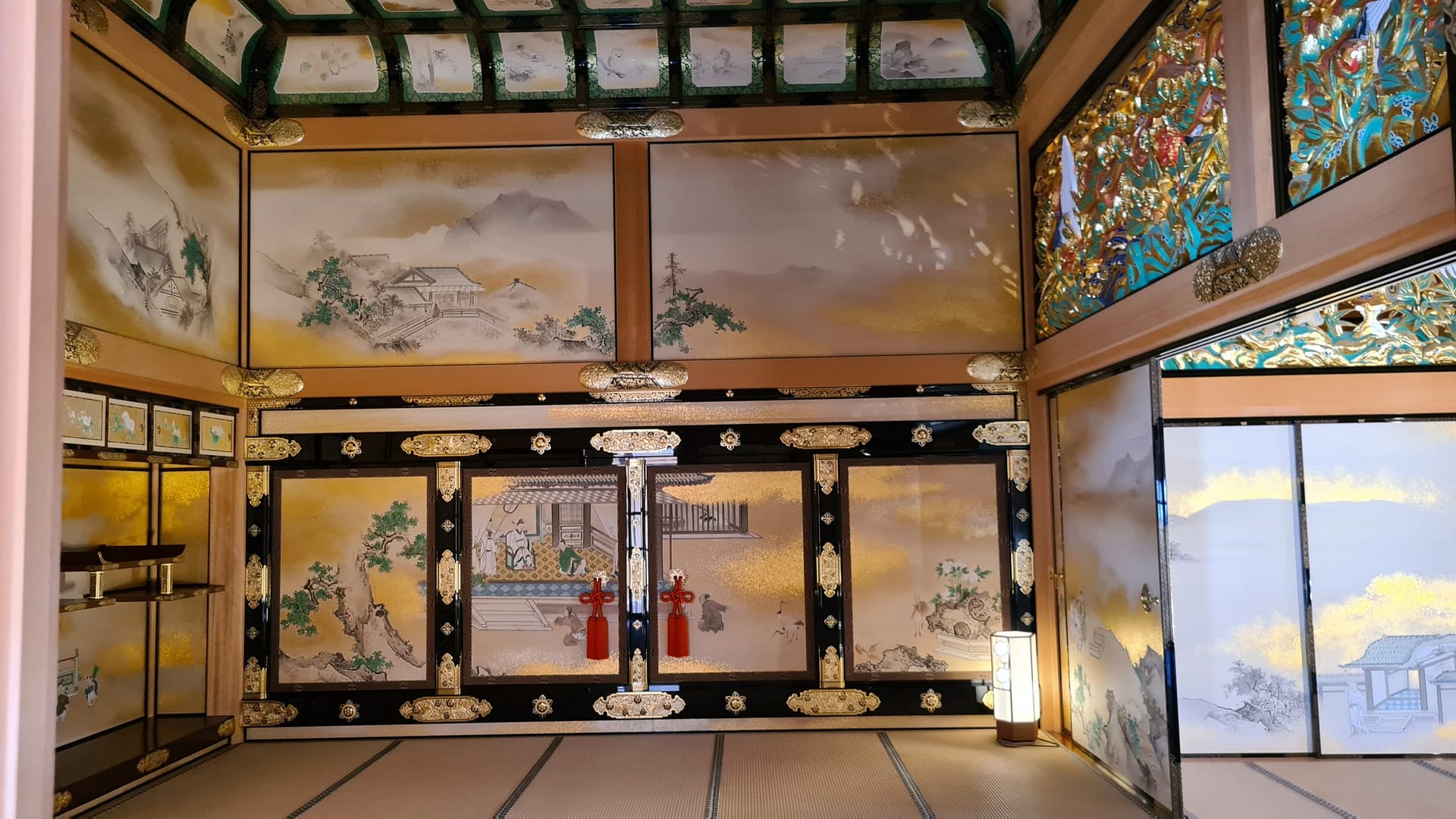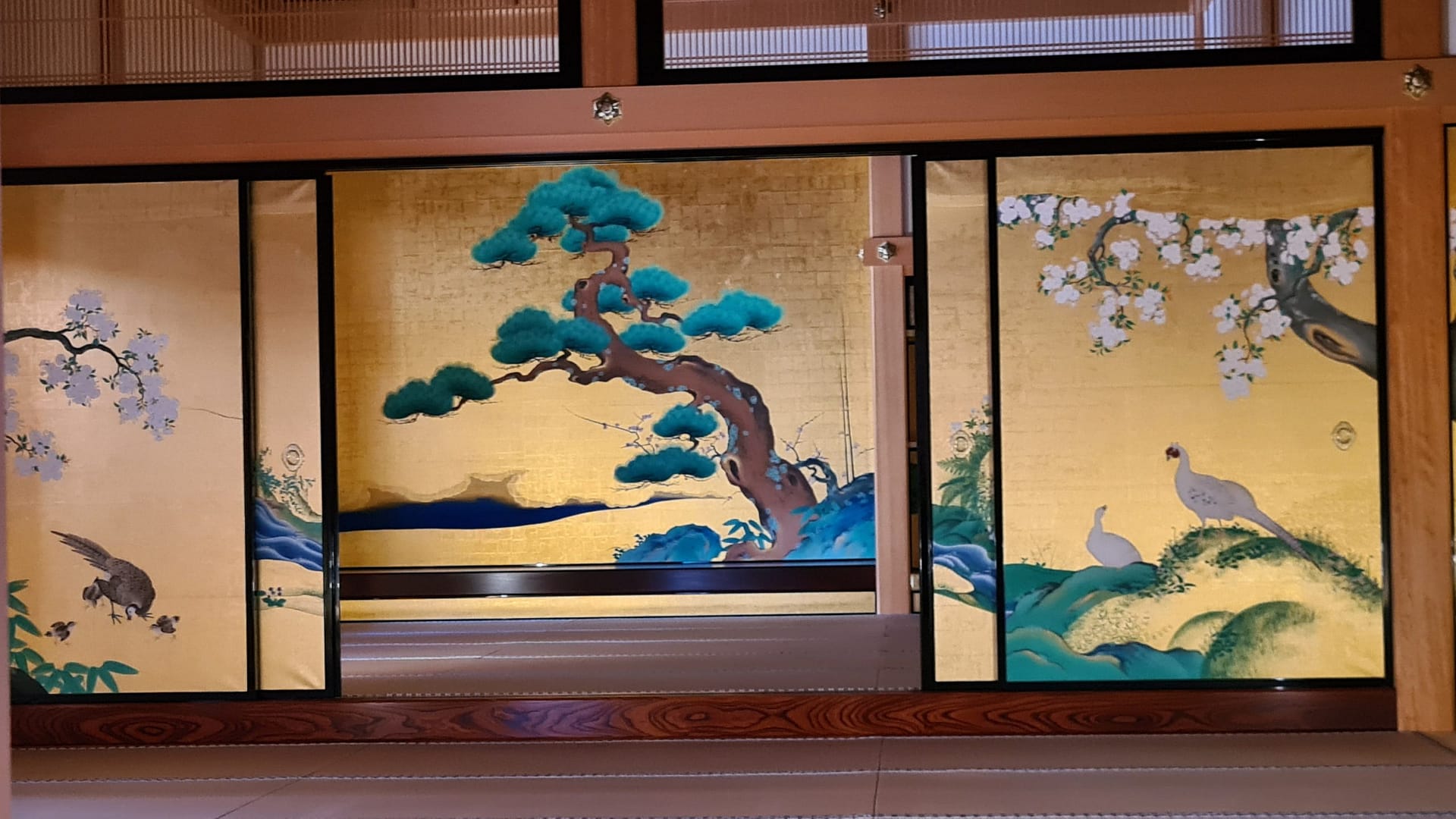 Zusätzlich konnte man vor dem Schloss noch den Hommaru Palast besuchen. Dieser wurde ebenfalls niedergebrannt und aufwendig wieder restauriert. Der Palast war im Vergleich zum Nagoya Castle bescheiden aus Holz und mit kunstvoll bemalten dünnen Papierwänden gebaut. Dennoch sah man, dass auch in der Restaurierung sehr viel Handwerkskunst steckte.