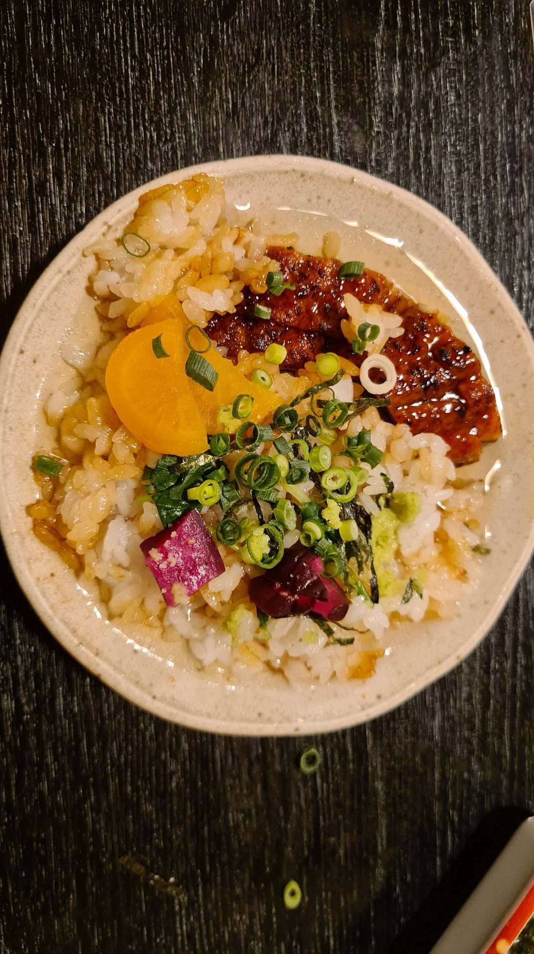 Zuerst vermischt man den Aal mit dem Reis. Das ist die erste Stufe. Nachdem etwa ein Drittel verzehrt ist, mischt man das beiliegende Gemüse ebenfalls mit in die Schüssel. Für das letzte Drittel schüttet man die beigestellte Brühe in die Schüssel mit dem Aal, dem Reis und dem Gemüse. Tatsächlich hat jeder „Gang“ etwas anders geschmeckt. Am besten fand Lukas jedoch den Süßwasseraal mit Reis und Gemüse, da die Brühe den Marinadengeschmack etwas schwach werden ließ. Auch wenn der Preis für das Hitsumabushi noch einmal deutlich über dem Durchschnitt von unseren gewöhnlichen Gerichten lag, war es eine Erfahrung wert.