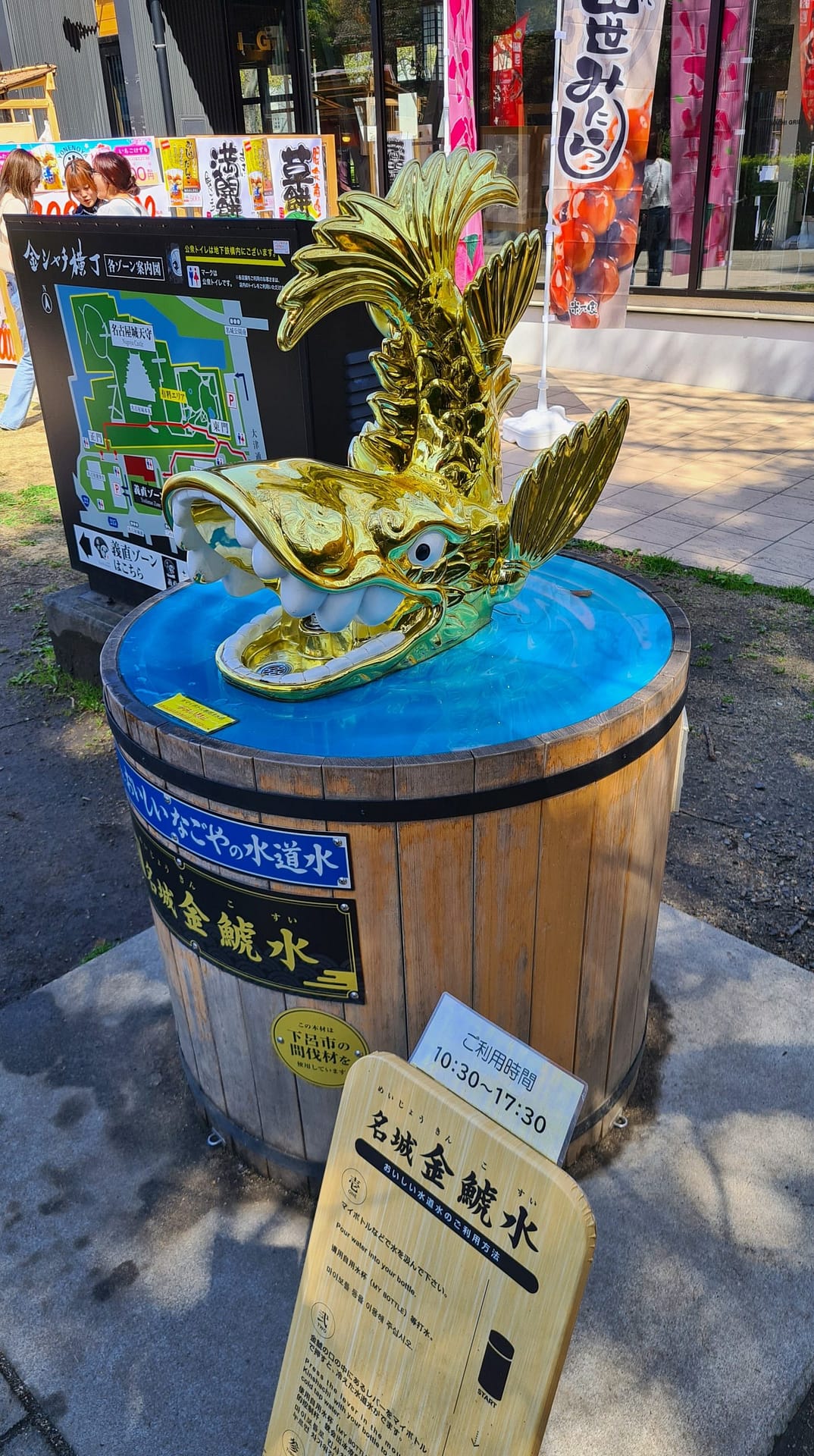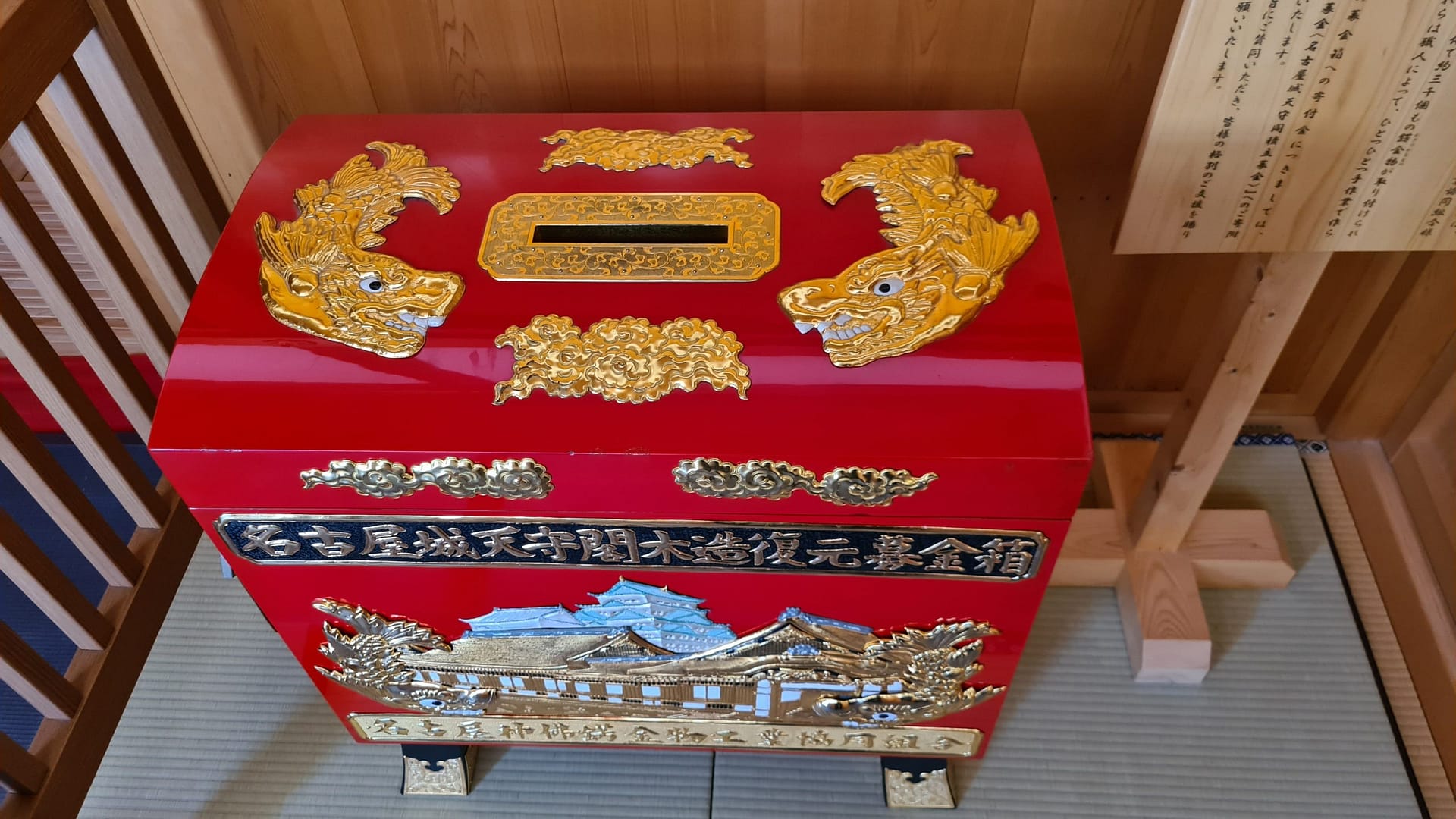 Die kurze Version ist, dass der Palast bereits einmal fast komplett niederbrannte und diesen mystischen Wesen nachgesagt wird in Ihren Bäuchen eine Menge Wasser zu sammeln und sowohl Regen als auch Wolken zu kontrollieren. Sie dienen an der Position auf der Spitze des Palastes also als Schutz gegen erneutes Ausbrechen eines Feuers. Diese Shachis sind zugleich auch Maskottchen von Nagoya.