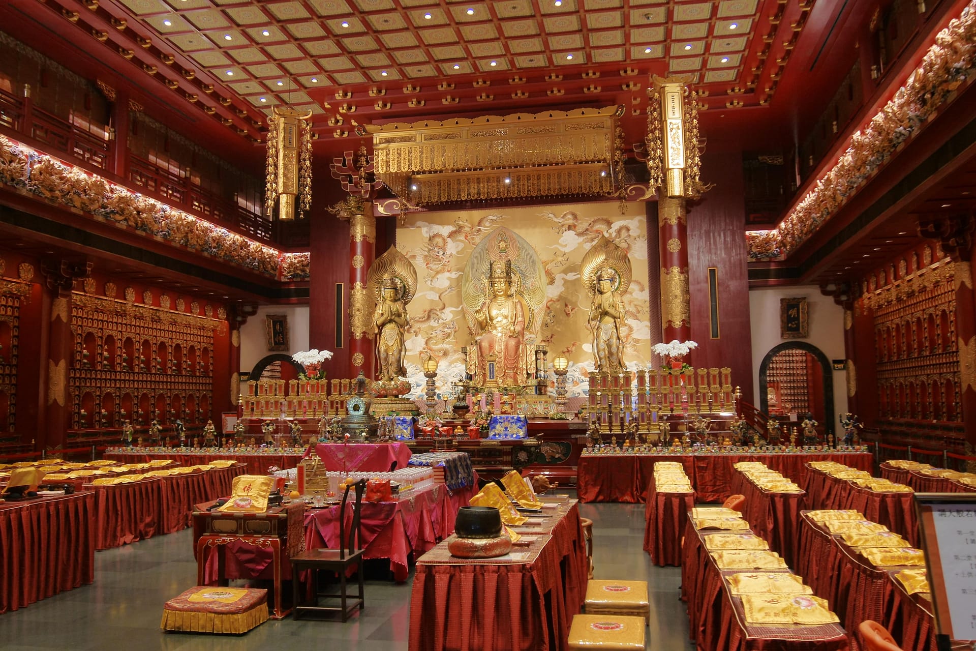 Der Innenraum des Buddha Tooth Relict Temple & Museum wurde im Stil eines Mandalas entworfen. Neben einigen Reliquien befindet sich (wie der Name schon sagt) auch ein Zahn von Buddha im Tempel. Der Reliquienraum ist jedoch nur für Mönche geöffnet. Besucher können jedoch von der Besuchergalerie aus hineinsehen.