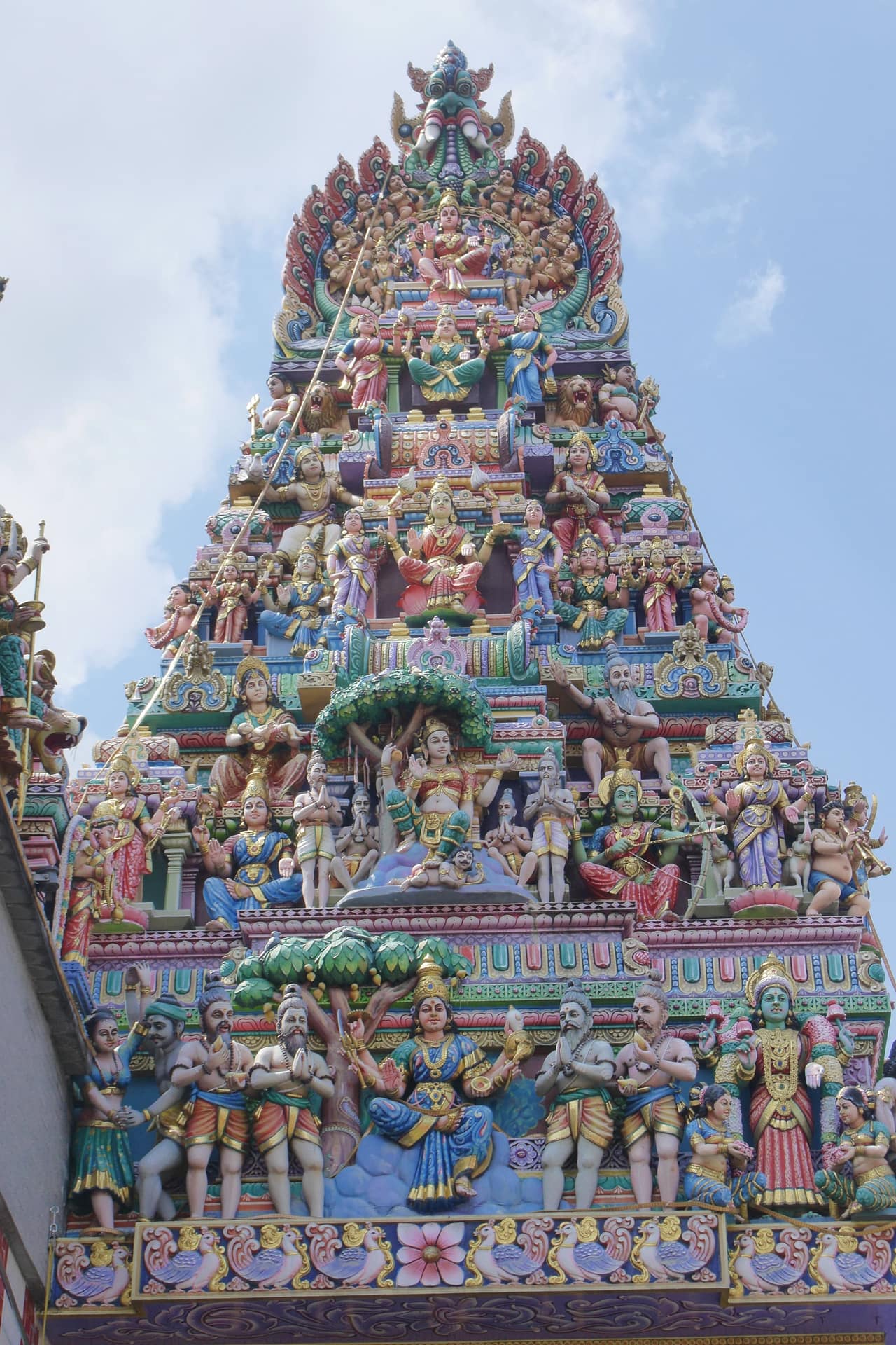Der Sri Mariamman Tempel ist der älteste Hindu-Tempel Singapurs. Die Detailarbeit, vor allem auf dem Gopuram (Eingang zum großen Turm) ist atemberaubend.