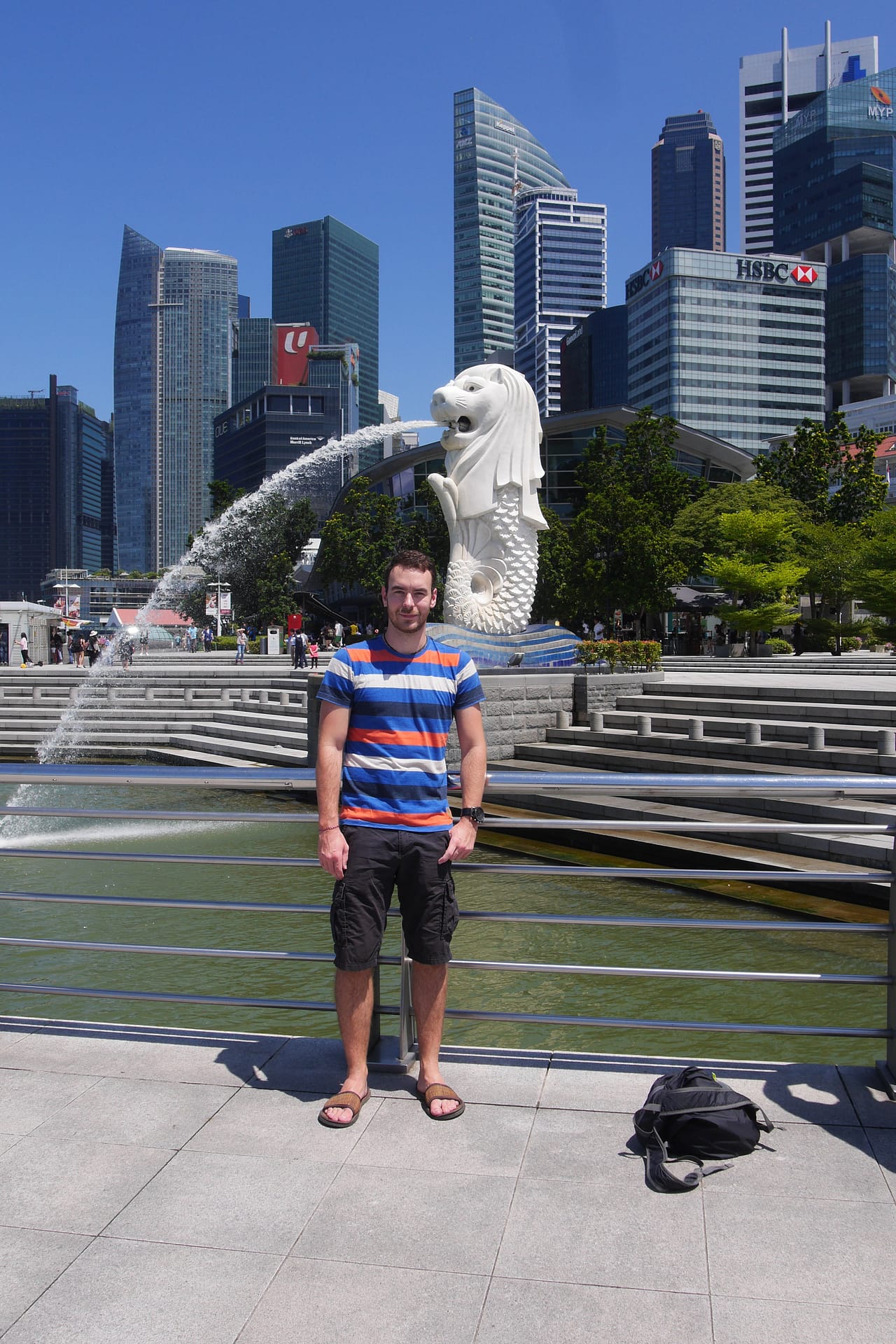 Auf der gegenüberliegenden Seite des Bays (ungefähr dort, wo wir die Lasershow gesehen haben), befindet sich auch der Merlion Park. Hier findet man die weiße, wasserspeiende Statue des Merlions, dem Wahrzeichen Singapurs, der auf fast jeder Postkarte zu finden ist. Das Fabelwesen ist eine Kreuzung aus Löwe und Fisch und auch wir haben einen kleinen Merlion als Andenken im Schrank stehen.