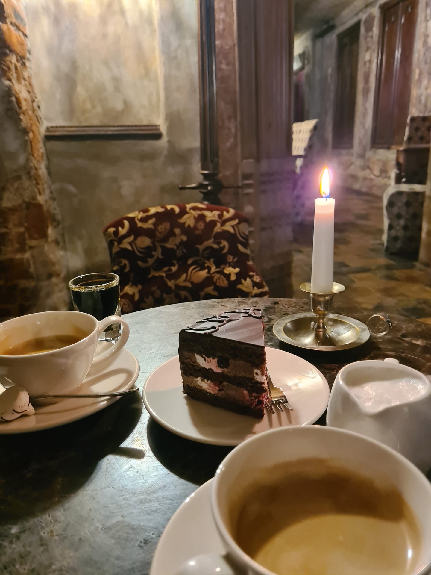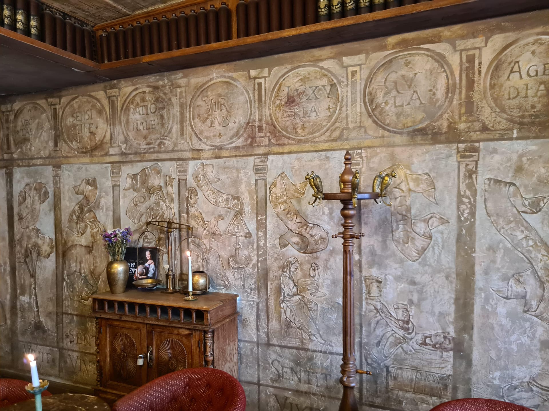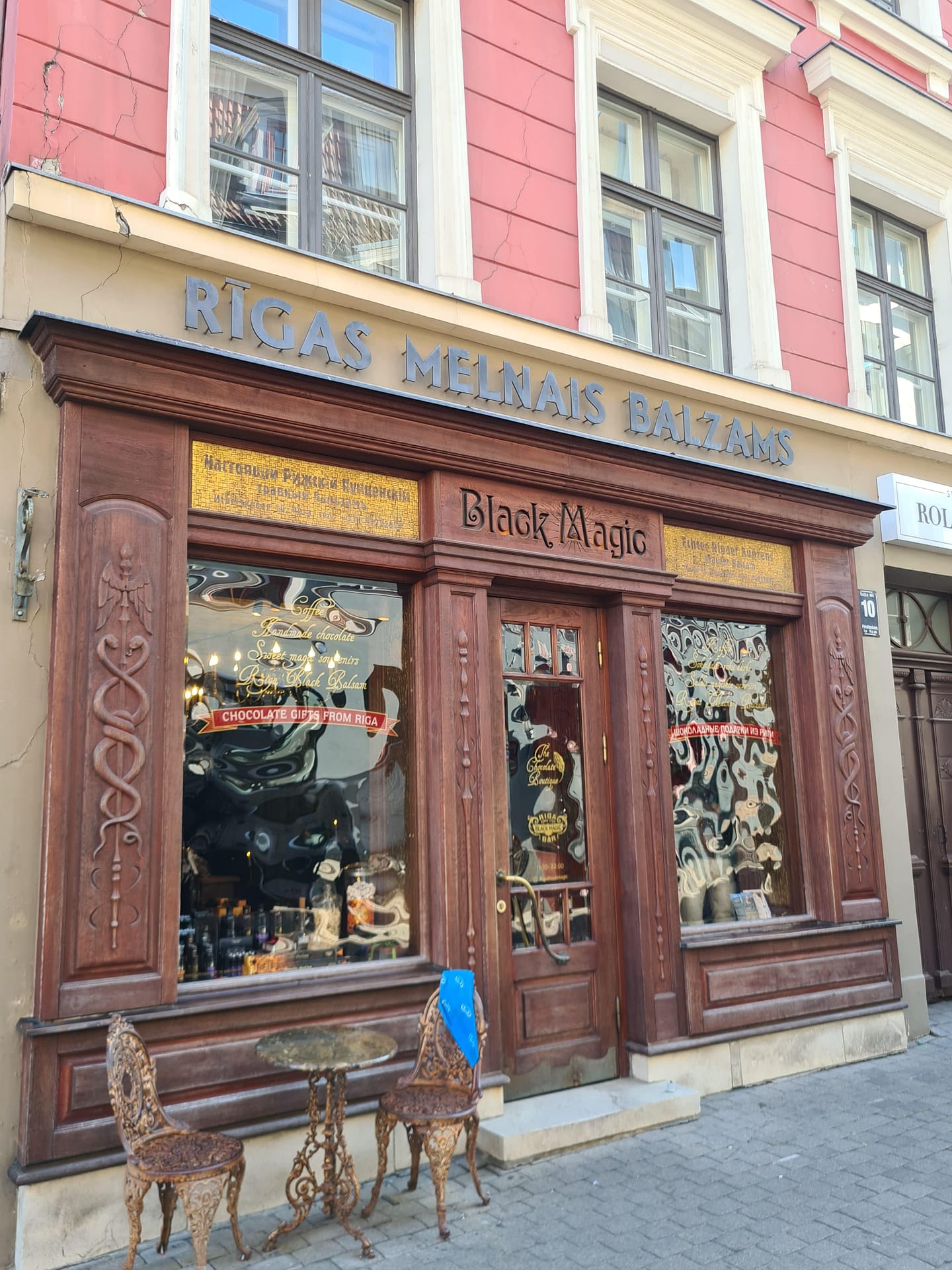Unser erstes Ziel war das Black Magic. Ein Café in einer alten Apotheke. Darin hat man sich fast wie in einer Kammer einer alten Burg gefühlt. Das Ambiente war definitiv einmalig. Wir probierten hier den berühmten Black Balsam. Ein Kräuterlikör, für den Riga bekannt ist, und der auch ein beliebtes Mitbringsel ist. Tatsächlich war er relativ stark. Ein wenig wie nicht ganz so süßer Jägermeister. Zudem hatten wir je einen Kaffee und haben uns ein kleines Stück Schokoladenkuchen geteilt. Eigentlich dachten wir zuerst „oh, das ist aber ein kleines Stück“, aber es war nicht nur unglaublich lecker, sondern auch extrem reichhaltig an Zucker, Butter,… sodass wir gar nicht mehr gebraucht haben. Trotzdem schon einmal ein ganz guter erster Eindruck.