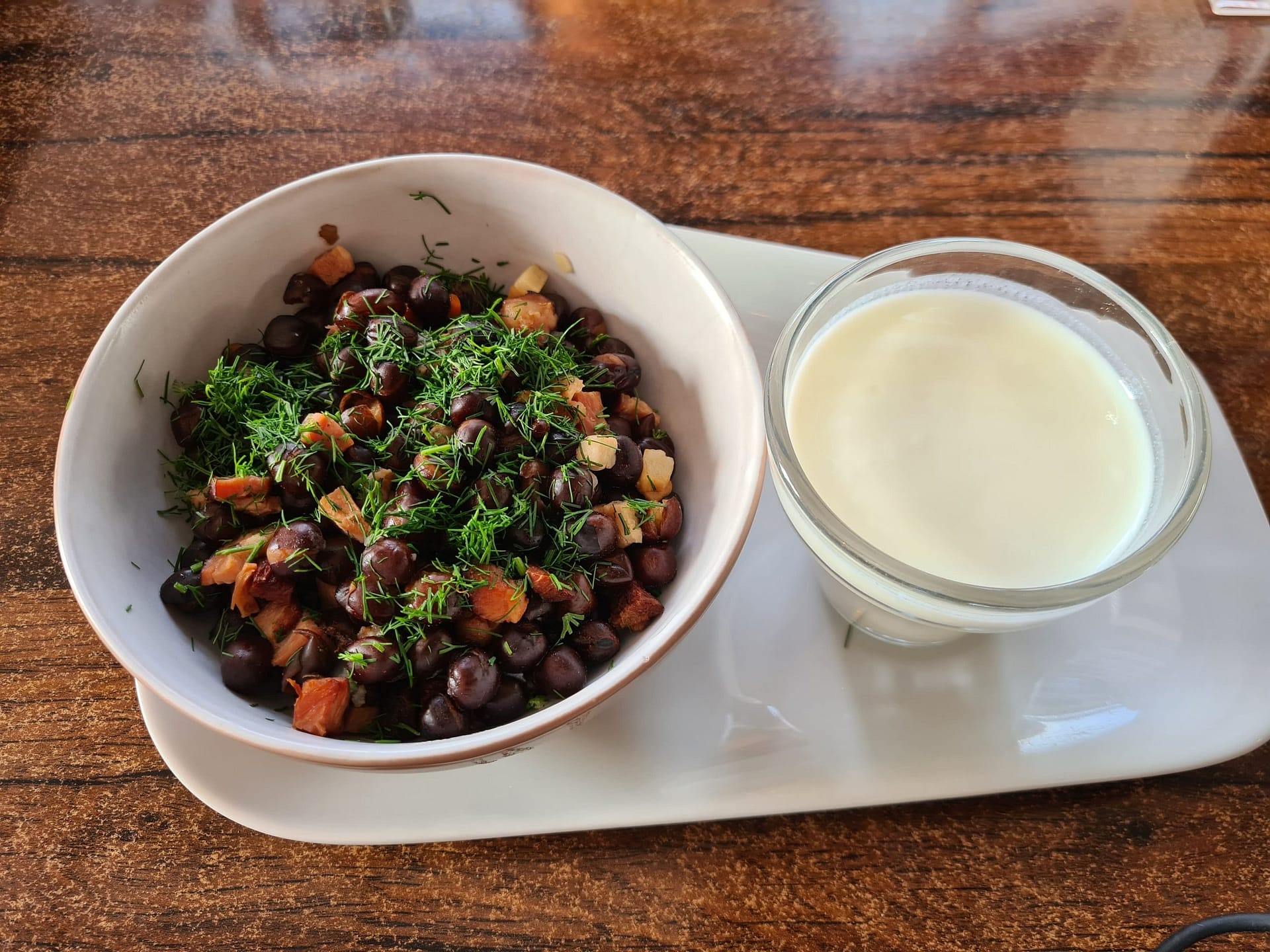 Abends waren wir dann im Province. Dort gibt es regionale, lettische Küche zu verkosten. Für Julia gab es Pelmeni (gefüllte Teigtaschen) und Lukas bekam schwarze Erbsen mit Speck und Dill und bekam dazu eine sehr dicke Buttermilch zu trinken. Das war mal etwas Ungewöhnlich, schmeckte aber beides sehr gut. Die Portionen waren für uns jedoch etwas klein.