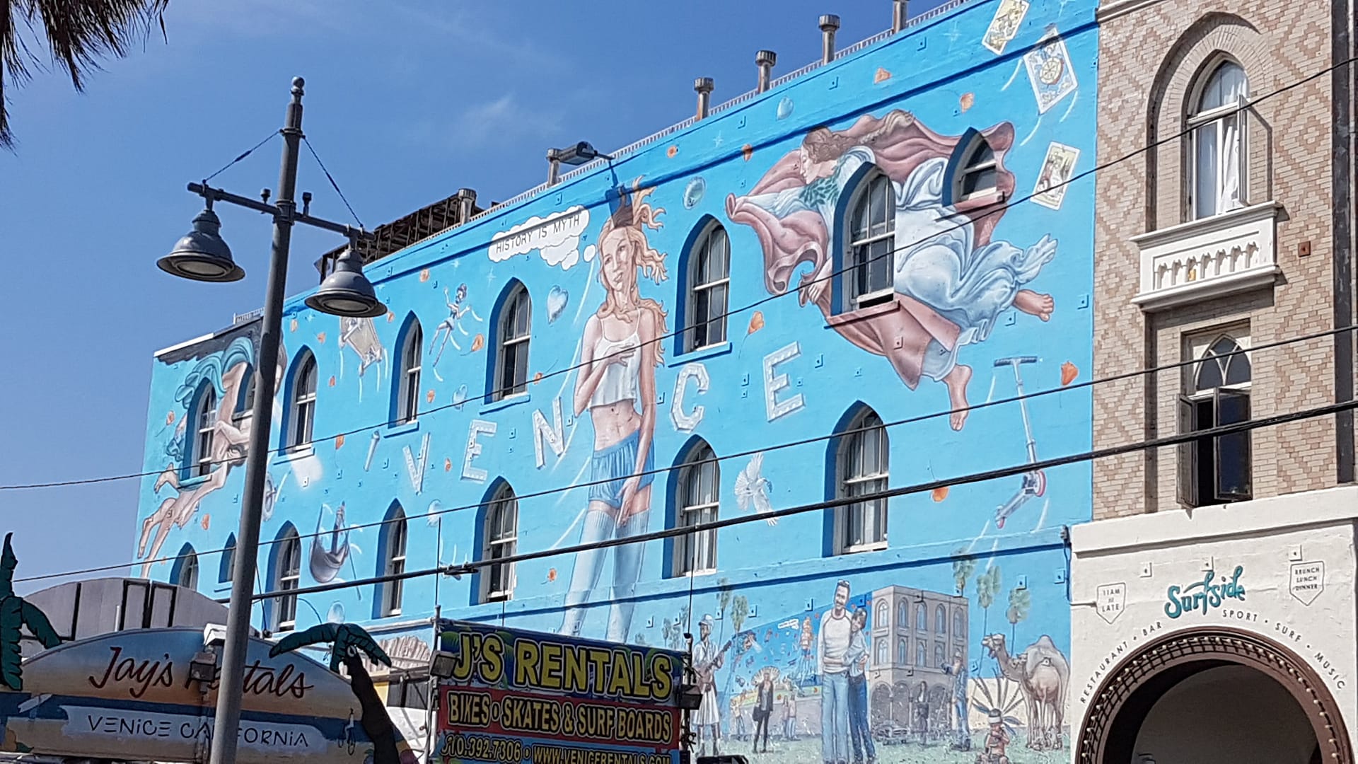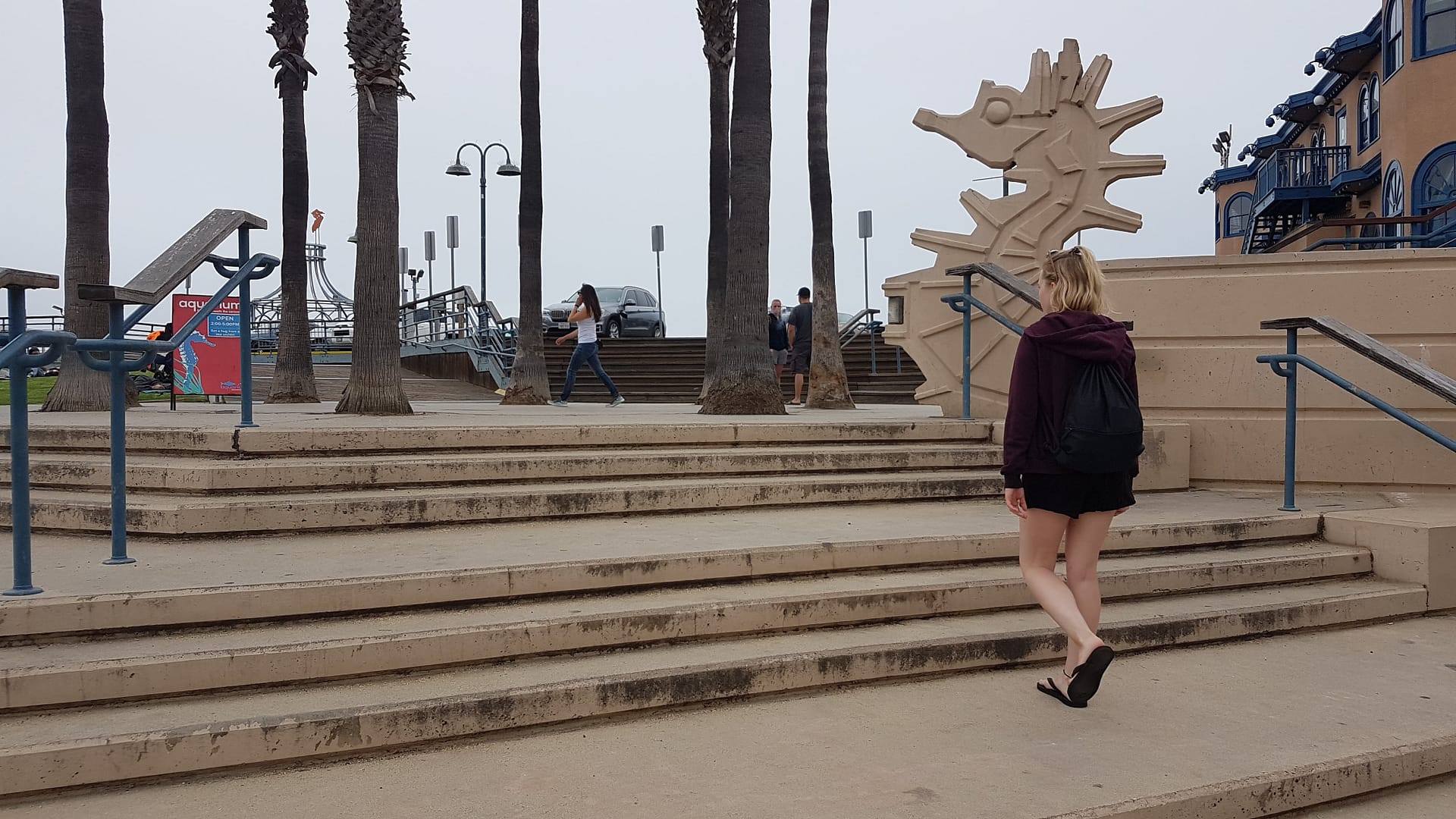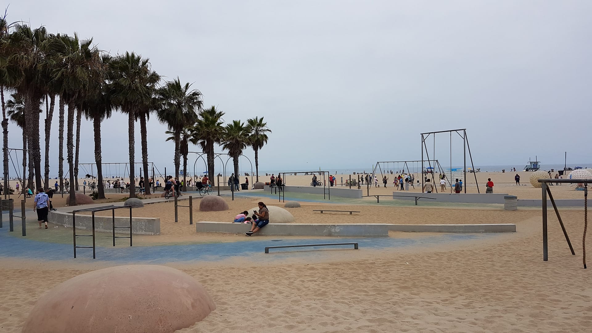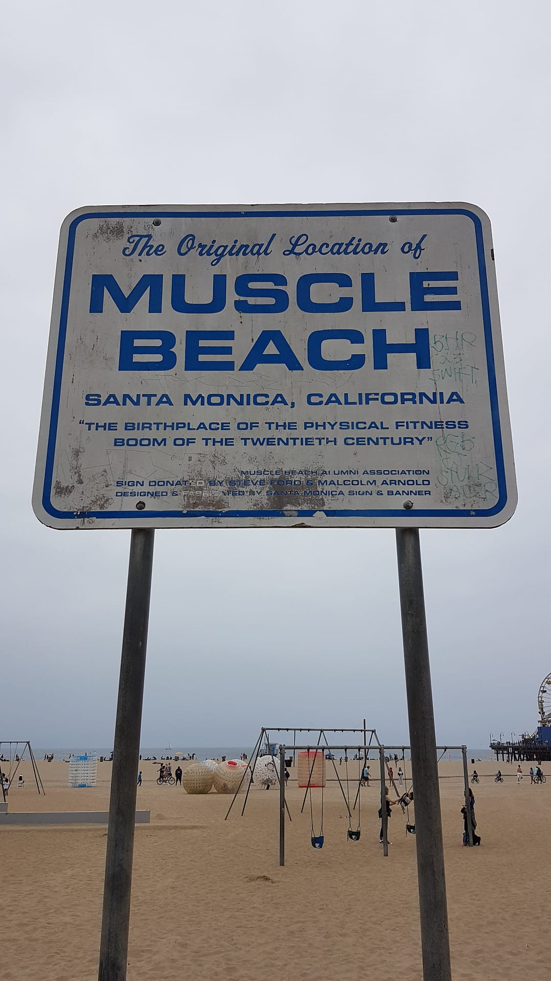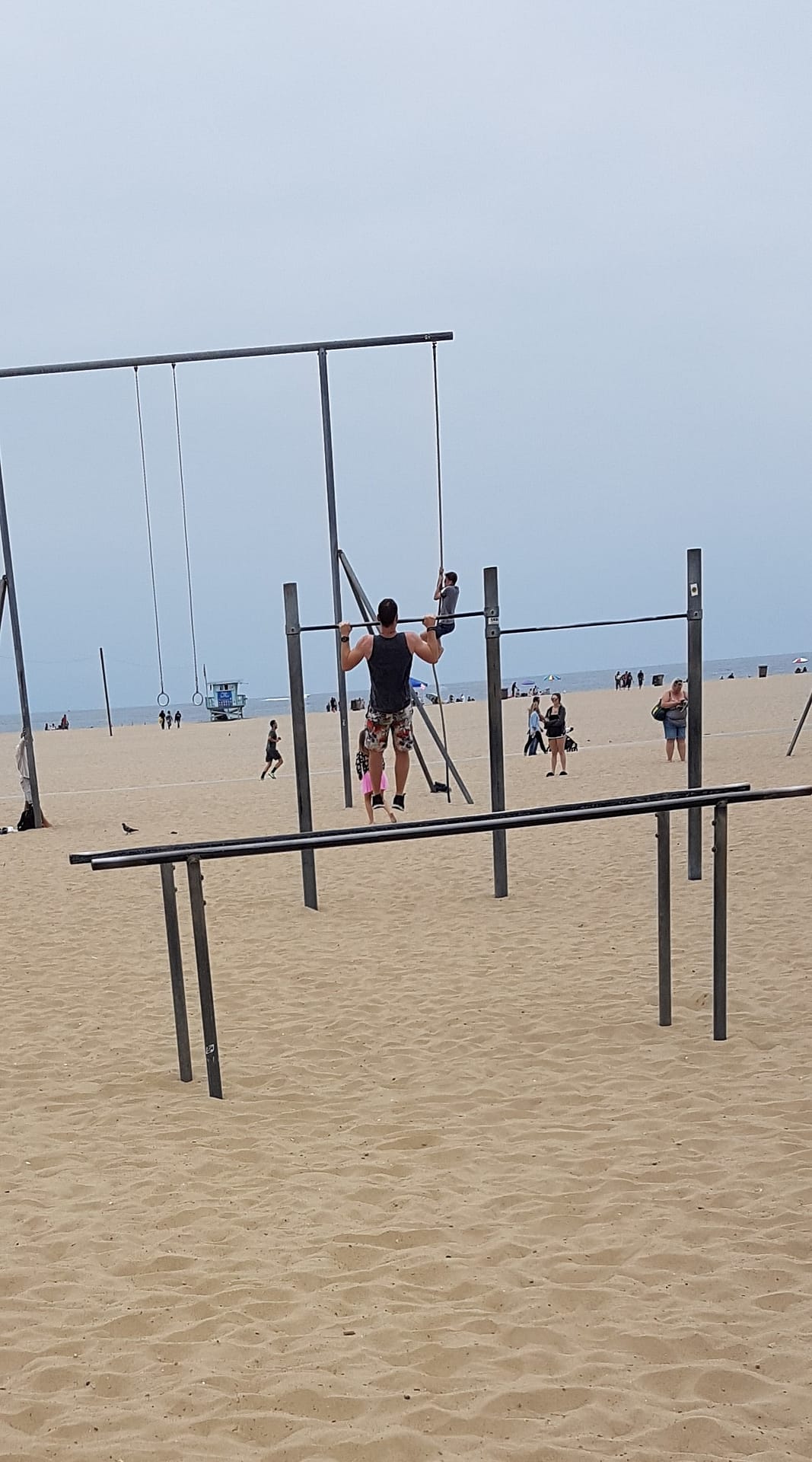 Danach liefen wir noch ein Stück weiter zum bekannten Venice Beach. Die Strandpromenade war ein buntes Mischmasch aus Künstlern, Touristen, Spaziergängern und Drogenabhängigen. Die Wände dort waren mit außerordentlich guten Graffiti-Kunstwerken übersät. Vom früheren Muscle Beach, an dem Bodybuilder-Legenden wie Arnold Schwarzenegger, trainierten war jedoch nicht viel zu sehen. Es gab einige Allwetter-Geräte wie Kletterseile und Ringe, aber war eher ein Touristen-Hotspot, aber tatsächlich hatten wir uns hier etwas mehr erwartet.