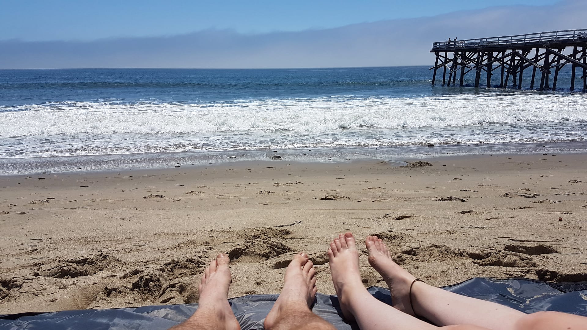 Das war leider ein ziemlicher Reinfall. Es gibt ein Paradise Cove Pier, welches zwar eine schöne Aussicht bietet, aber den Preis dennoch nicht wert ist. Der Strand selbst ist zwar ganz nett, aber ins Wasser konnte man nicht, da die Wellen einem ziemlich große Steine um (und an) die Beine spülten. Lukas hatte danach ziemlich viele neue blaue Flecken, als er trotzdem versuchte, zumindest kurz hier ins Wasser zu gehen. Wir blieben wenigstens zwei Stunden am Strand, bevor wir weiterfuhren. So haben wir also für 17,50 Dollar pro Stunde geparkt. Das war vermutlich eine der schlechtesten Ausgaben der Reise.