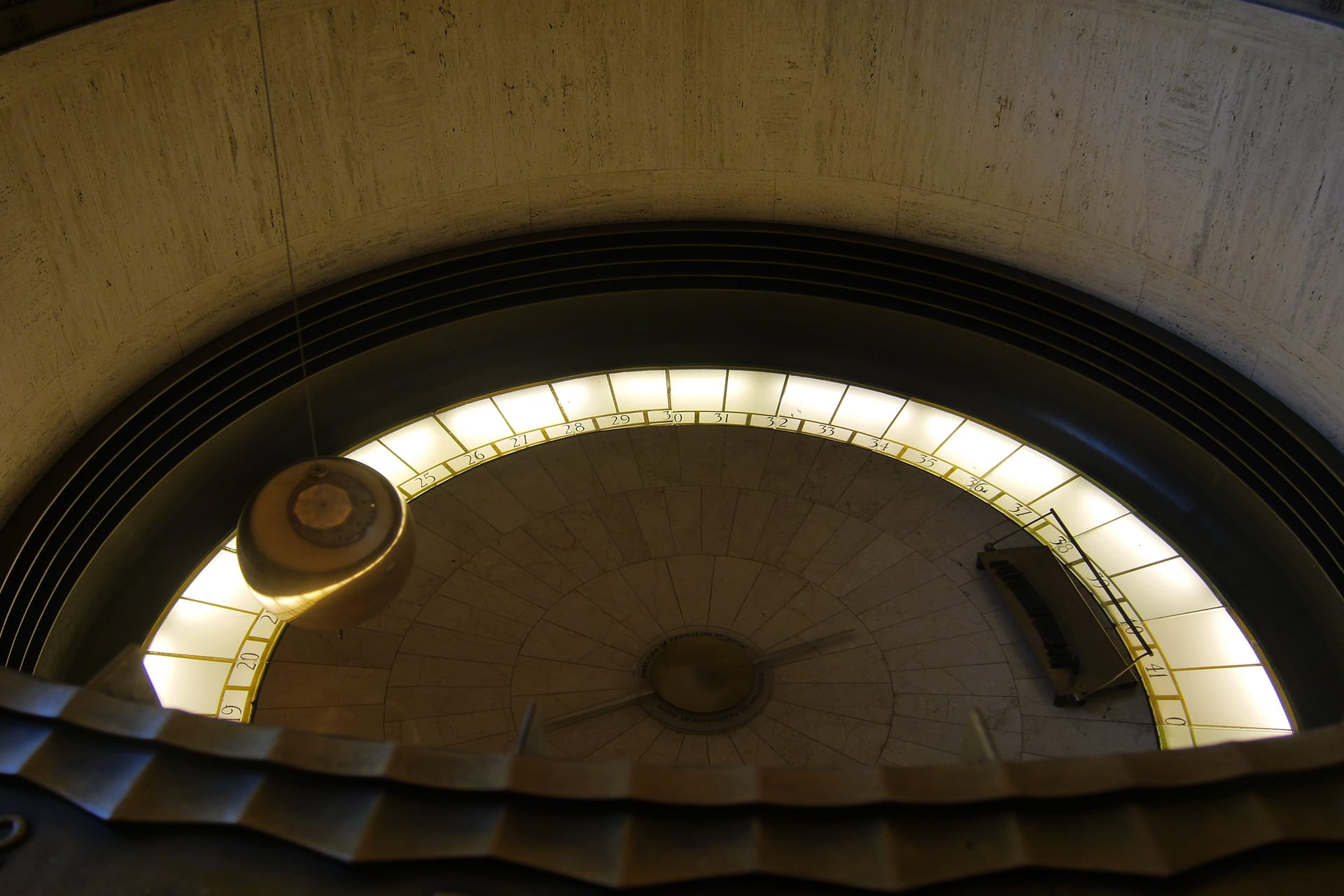 Im Griffith Observatorium selbst gab es einiges über die Sterne zu lernen und zu sehen. Hier standen viele Modelle, Statuen und Geräte. Zudem gab es ein Pendel, das die Zeit anhand der Erdumdrehung mechanisch gemessen hat. Das war ziemlich cool. Das Pendel selbst bewegt sich hierbei nicht, sondern es ist die Erde, die sich sozusagen „um das Pendel“ dreht. Dabei wird etwa alle 10 Minuten einer der Steine durch das Pendel umgekippt, von welchem sich dann die Zeit ablesen lässt.