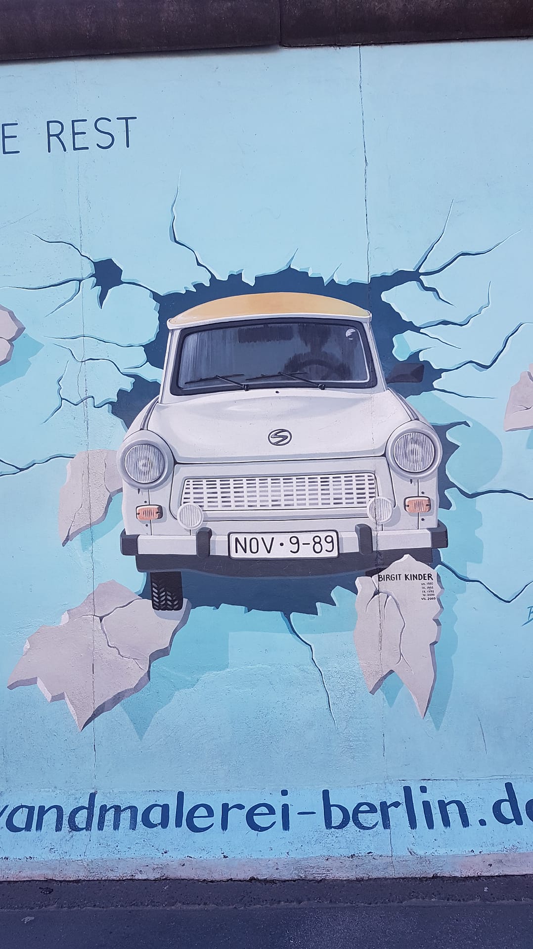 Den Tag haben wir in einem schönen Café gestartet, das wir am Abend zuvor am Potsdamer Platz gesehen haben. Dem Zimt & Zucker Kaffeehaus. Von dort aus ging es weiter zur East Side Gallery. Die East Side Gallery ist ein dauerhaft erhaltener Teil der Berliner Mauer, auf dem sich im Frühjahr 1990 insgesamt 118 Künstler aus 21 Ländern mit über 100 Bildern verewigten, die den Fall der Mauer, Hoffnungen auf Freiheit und die politischen Umbrüche kommentieren. Eines der berühmtesten Motive ist der Bruderkuss von Dmitri Wrubel.